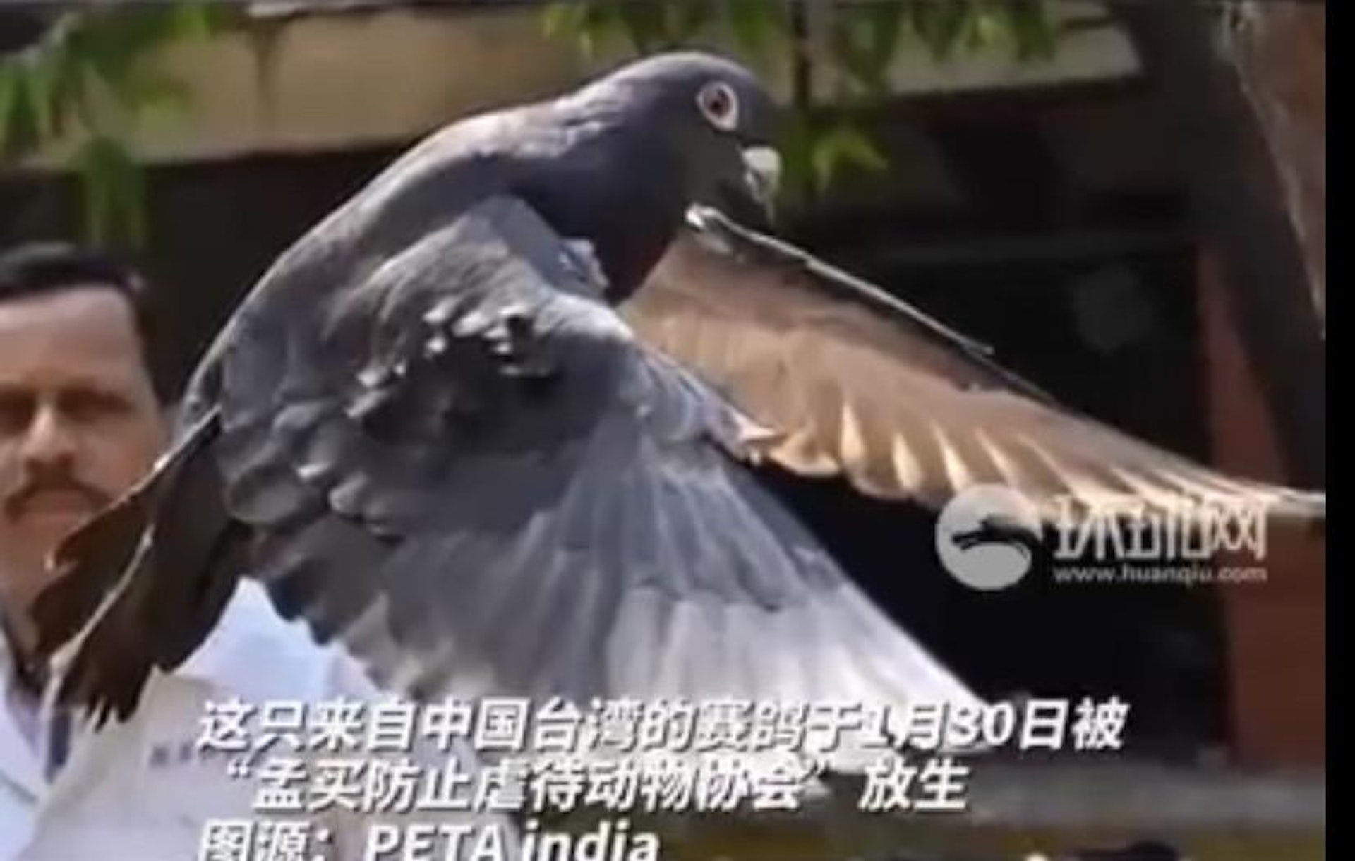 一隻鴿子在印度被當成「中國間諜」,遭拘留8個月。(環球網影片截圖)os.tvboxnow.com5 c& `; _( ~& }4 P7 C