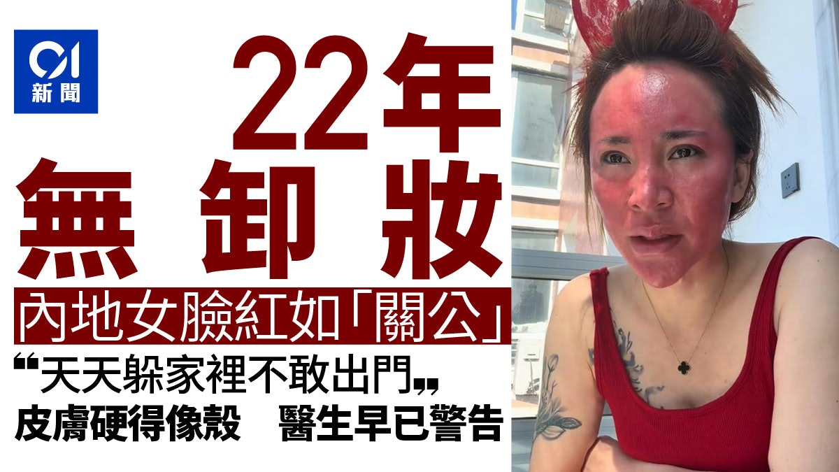 9 G7 s8 c& G& z% }! ~( d吉林一名37歲女子近日因長達22年從不卸妝,導致面部嚴重過敏、紅腫脫皮,整張臉紅得如「關公附體」,甚至「皮膚硬得像殼」,狀況令人震驚。影片中她自述「癢得受不了,天天躲家裡不敢出門」,但這番說法隨即引來網民質疑「不敢見人,倒敢發影片?這是想當網紅吧?」tvb now,tvbnow,bttvb$ F2 h7 w u' S5 j% ` I