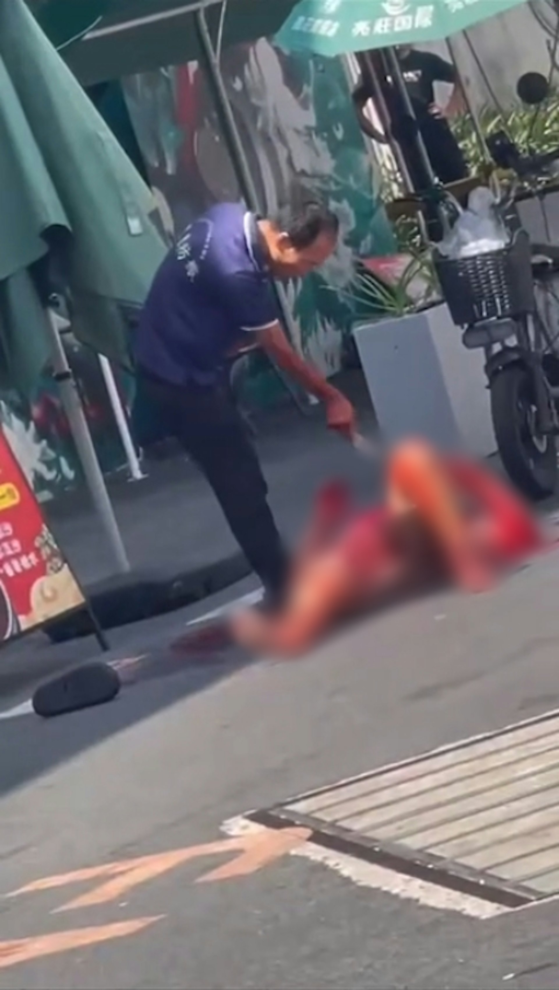 / s; M5 N# {# p+ h6 }! k; D網傳影片顯示,一名身穿藍色上衣的男子持刀,不斷刺向另一名男子的腹部和頸部,後者多次伸手試圖阻擋無果,其後倒在血泊中。