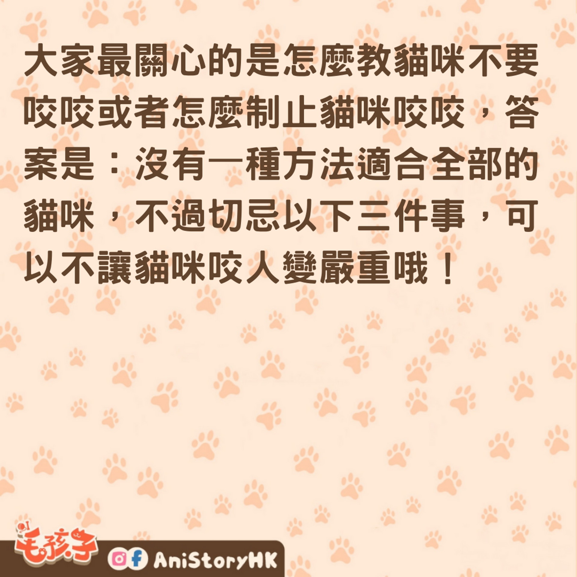 ⼤家最關⼼的是怎麼教貓咪不要咬咬或者怎麼制⽌貓咪咬咬,答案是:沒有⼀種⽅法適合全部的貓咪,不過切忌以下三件事,可以不讓貓咪咬⼈變嚴重哦!