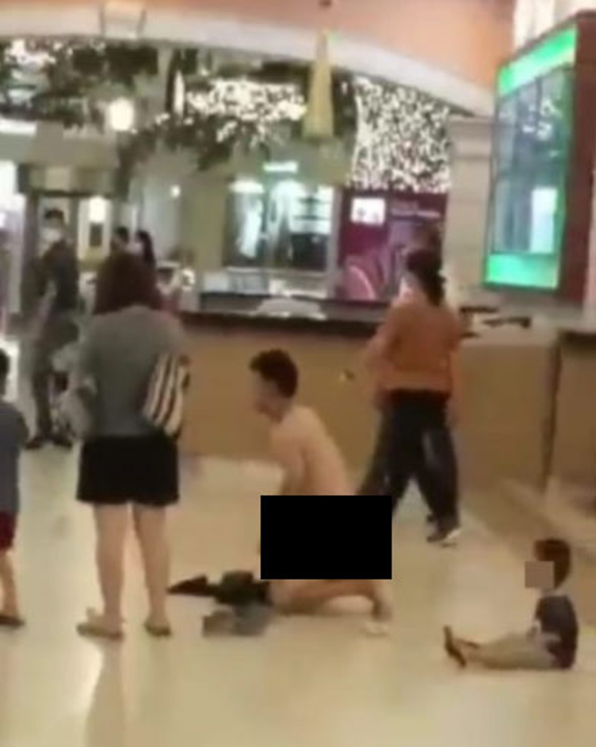 / F) @9 U( F% J! O5 S* b馬來西亞一名男子在雲頂一間酒店突然脫光衣服下跪,妻兒就在身邊,事發地點是酒店大堂,在場人士震驚。 (網傳影片截圖)& h" e S' y4 c" e, s