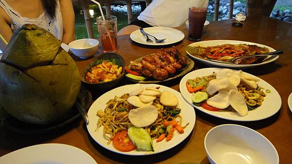 然後在夜晚燈光搖曳下吃著美味的印尼料理