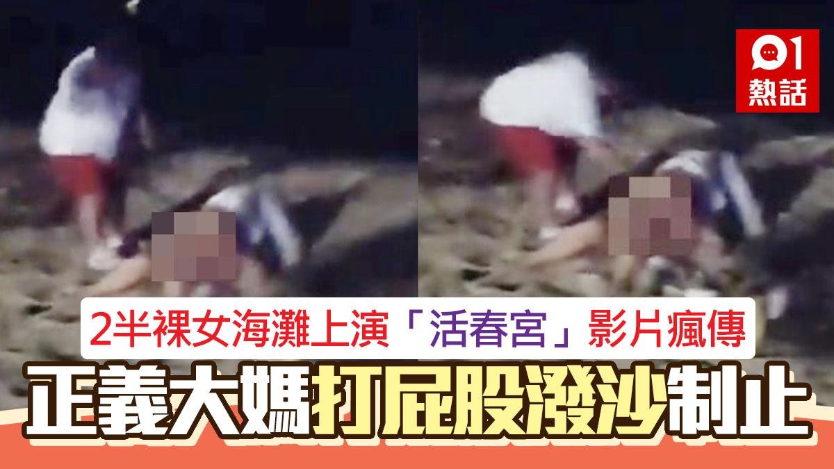 - W! o+ k+ P3 a6 ^' s看到對方沒有動作時,旁邊幾名大媽氣得一擁而上,不停指責並抓起沙灘上的沙子,往她們身上丟擲,最後小情侶才不甘願的分開。