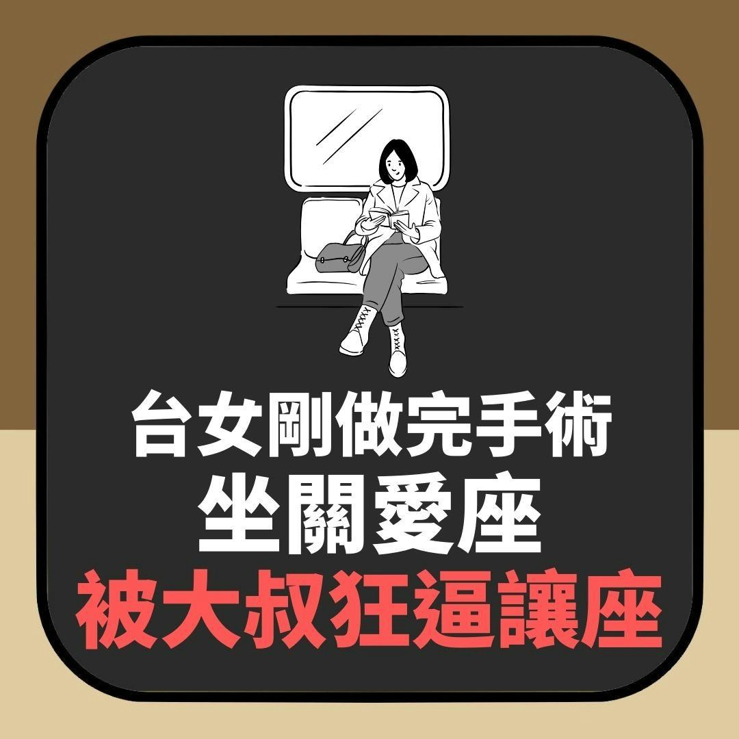 5 o0 I7 h; r- x台女剛做完手術坐關愛座「被大叔狂逼讓座」 一動作網民斥性騷擾(01製圖)tvb now,tvbnow,bttvb8 i7 Y8 ^# z. |0 }' t0 s