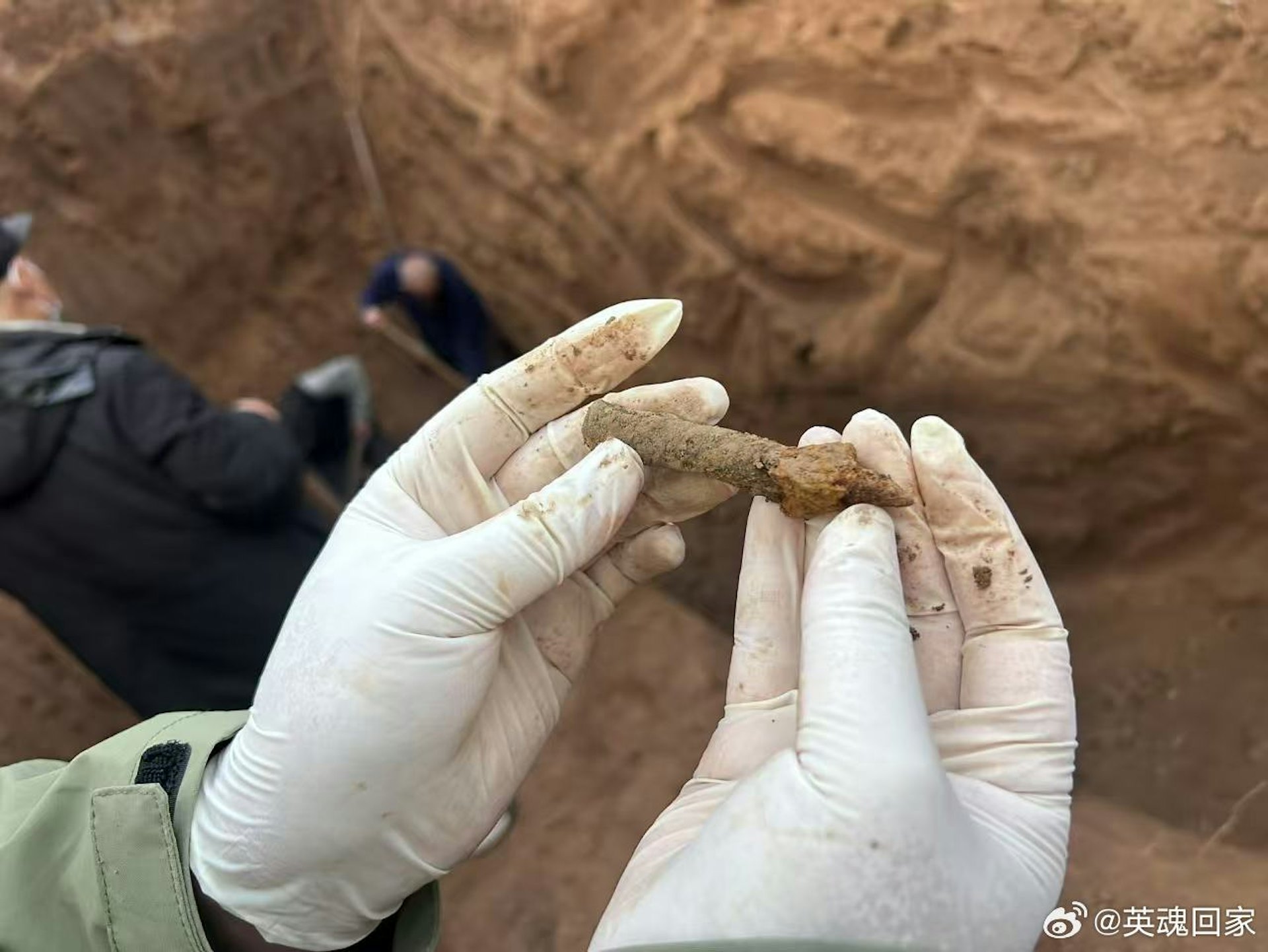 工作人員陸續收殮出多具將士骸骨。(微博@英魂回家)0 b$ K4 W0 X9 L1 r1 ~# C