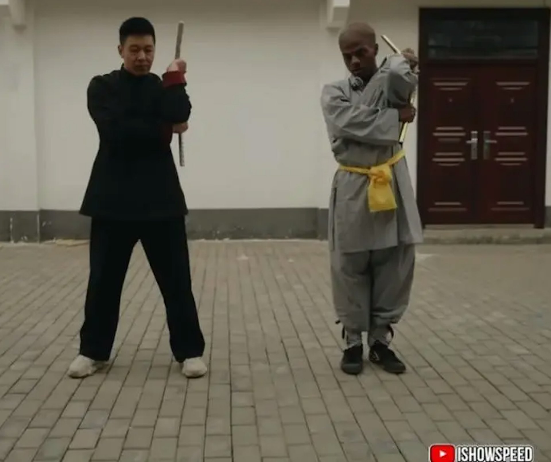 , z5 G7 v, r( w8 Q. _「甲亢哥」展開了一場別開生面的中國功夫學習之旅。(IShowSpeed Youtube直播截圖); X9 m, X, v6 t' R$ C