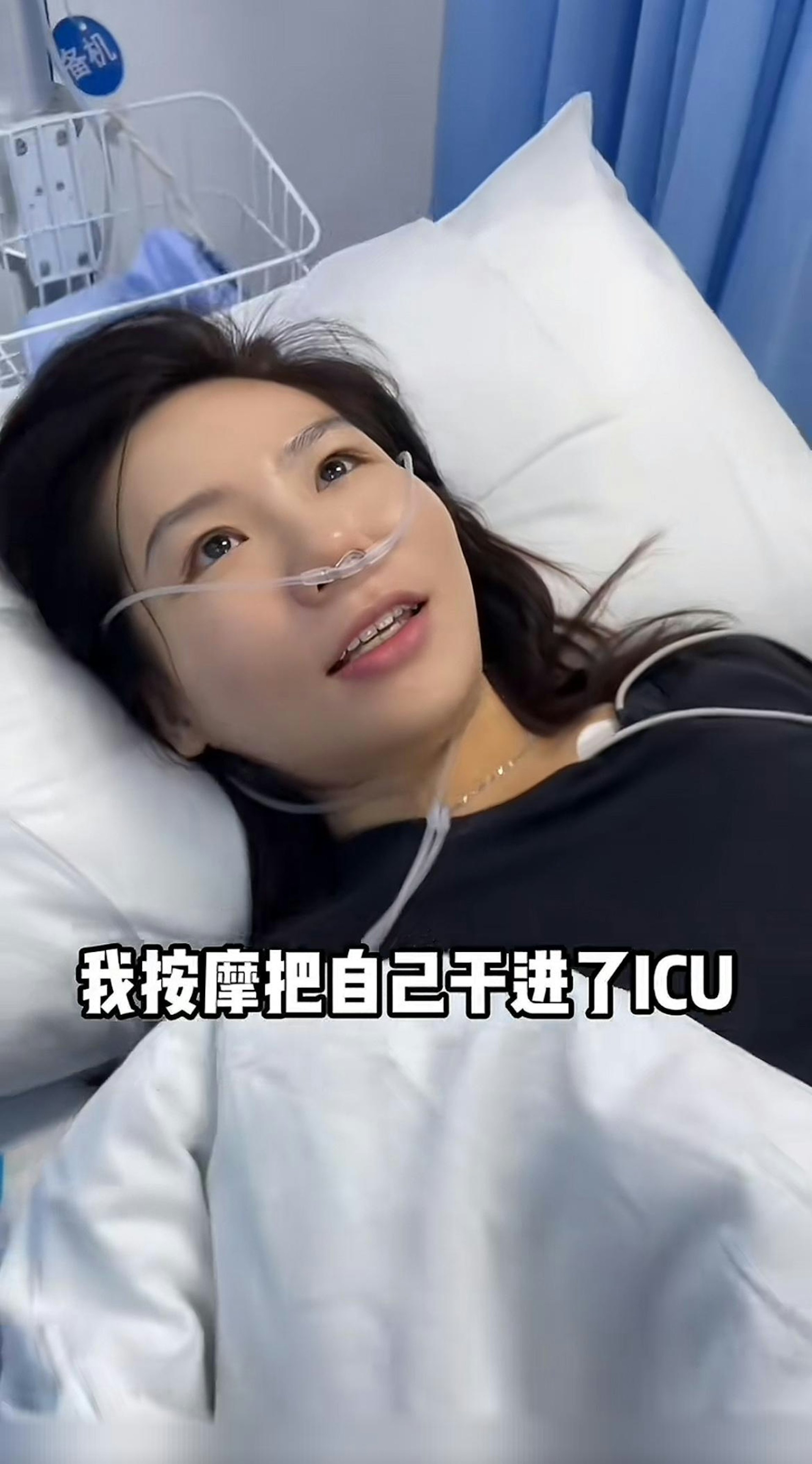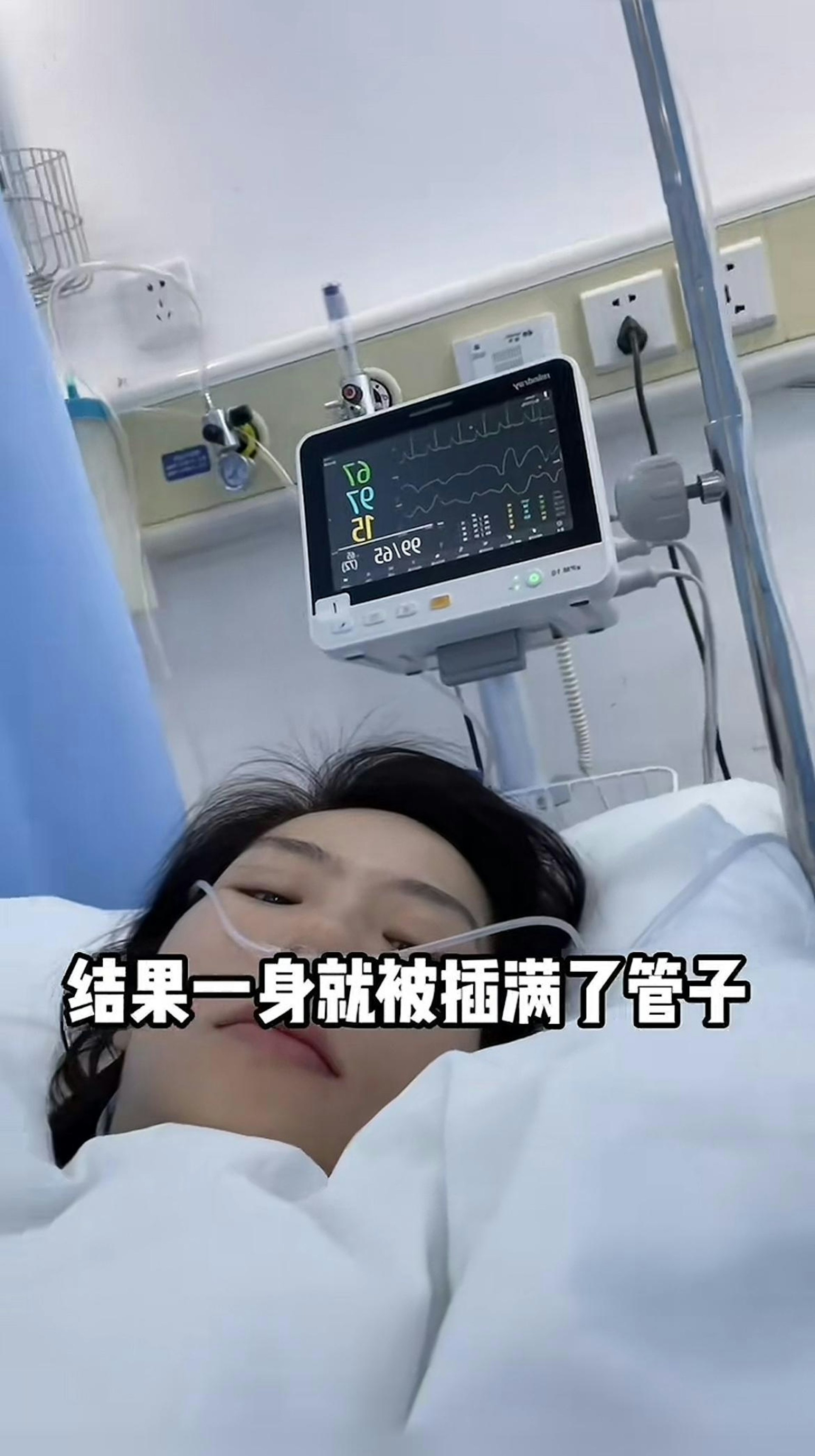 # d7 a9 t- g. i ^女子渾身插管。(影片截圖)