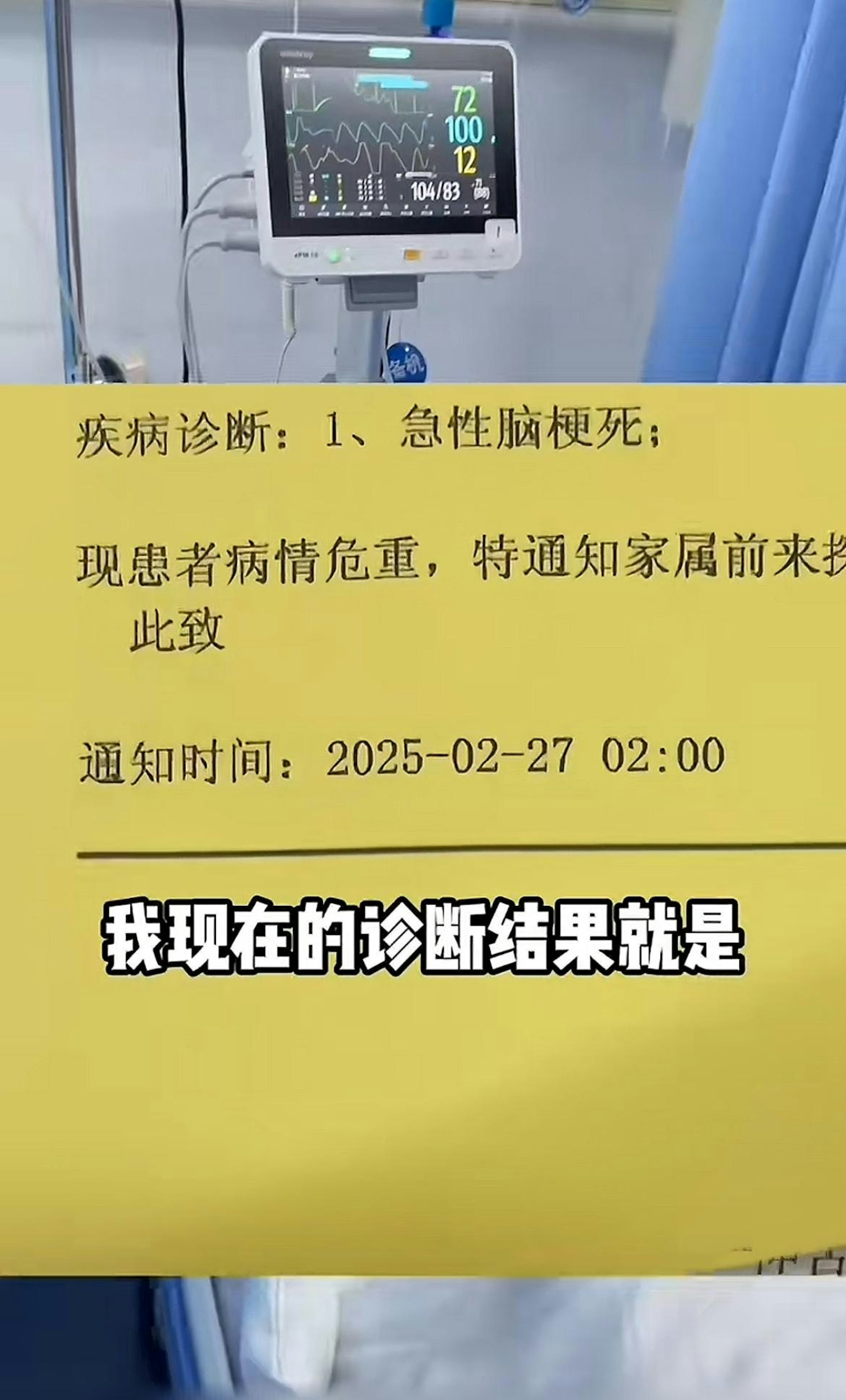 " X6 C+ X2 V+ _" K$ y0 m1 r該名女子隨即被朋友緊急送醫,入院便收到病重通知書,被確診為急性腦梗死。她表示,「要是晚幾個小時,我可能就偏癱了」。