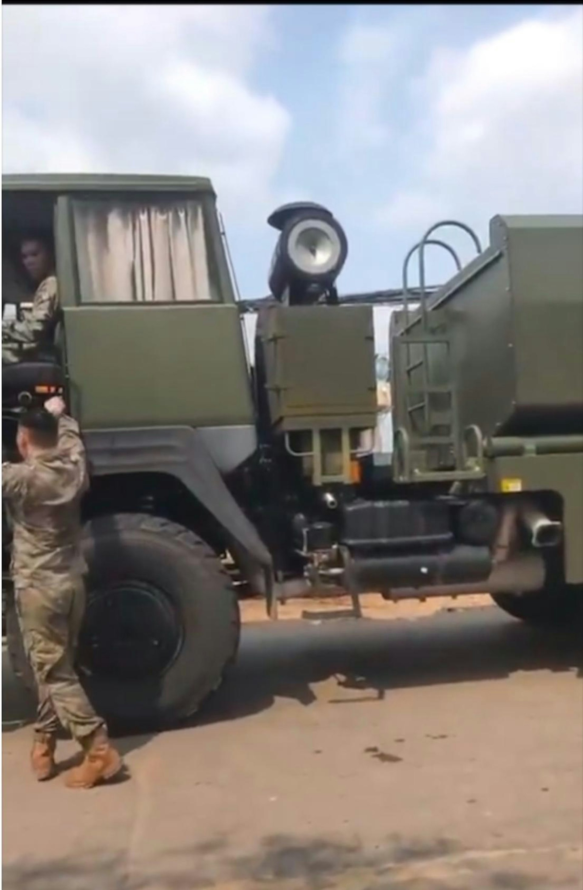 當地已經有軍人前往處理事故,現場停了不少軍車。(影片截圖)