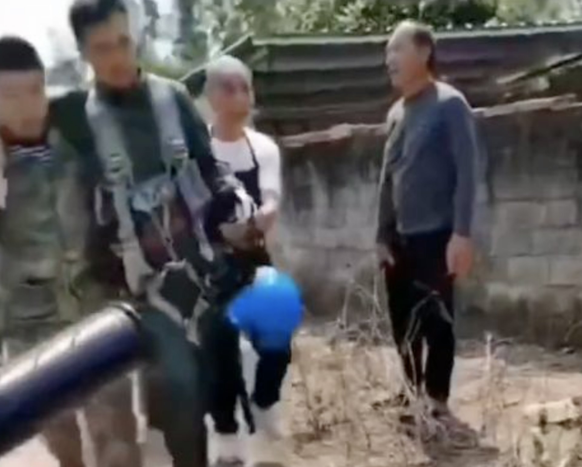 當地村民圍觀爆炸現場。(影片截圖)1 S. ]! u$ z: M: V& }3 V