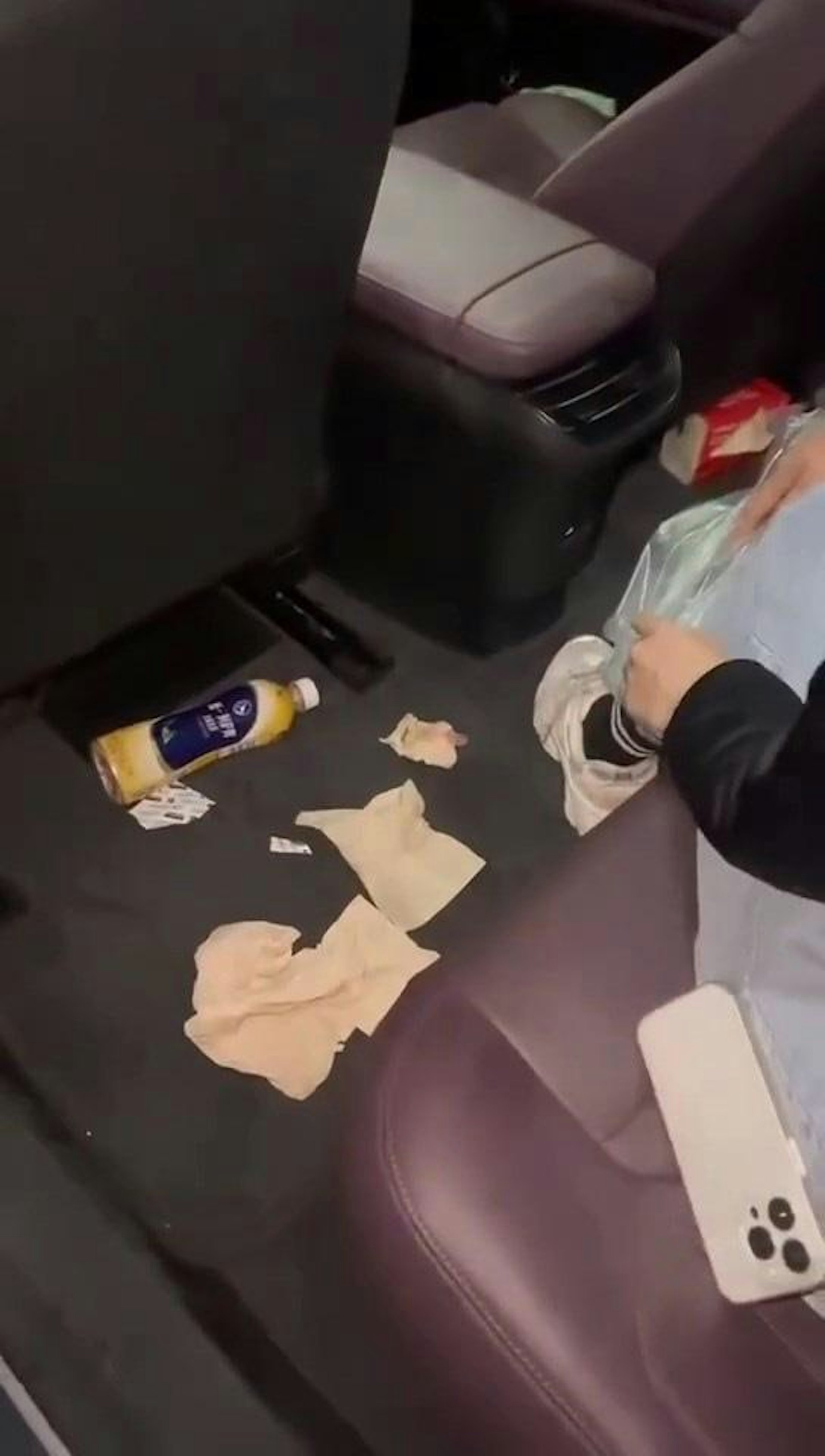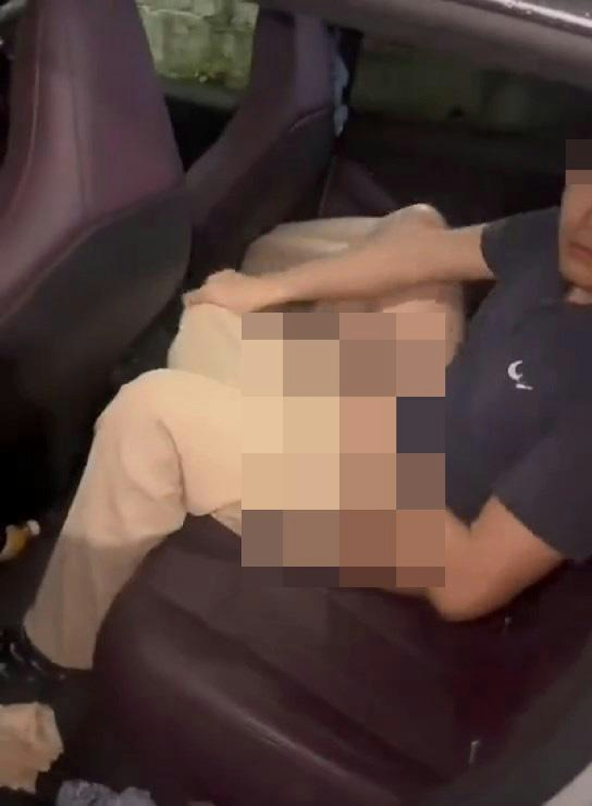 妻子則怒氣沖沖撿起選在車內的避孕套及用過的紙巾。(影片截圖)