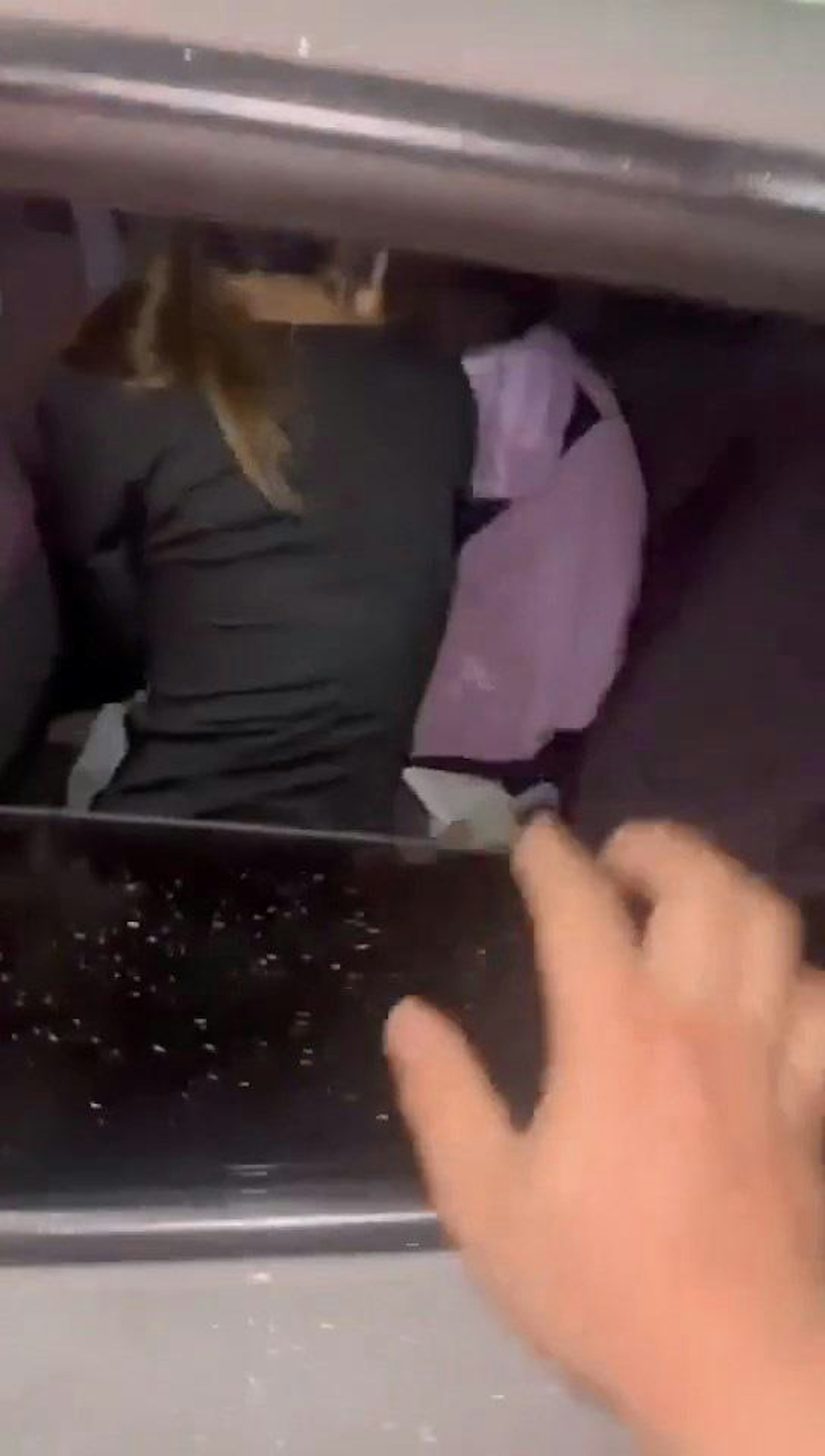 丈夫已下車與妻子親友在車外推撞,場面混亂,而妻子走入私家車後座不斷掌摑小三。(影片截圖)