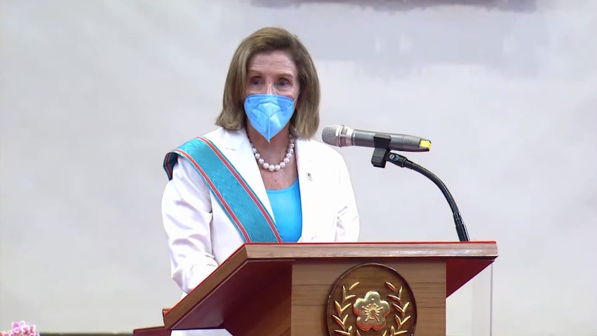 佩洛西致詞時表示,她非常榮幸能夠接受勳章頒贈,也代表這次所有來訪的美國議員一起接受這份勳章,並為蔡英文的女性領導力量,以及她自己身為女性領導人為榮。