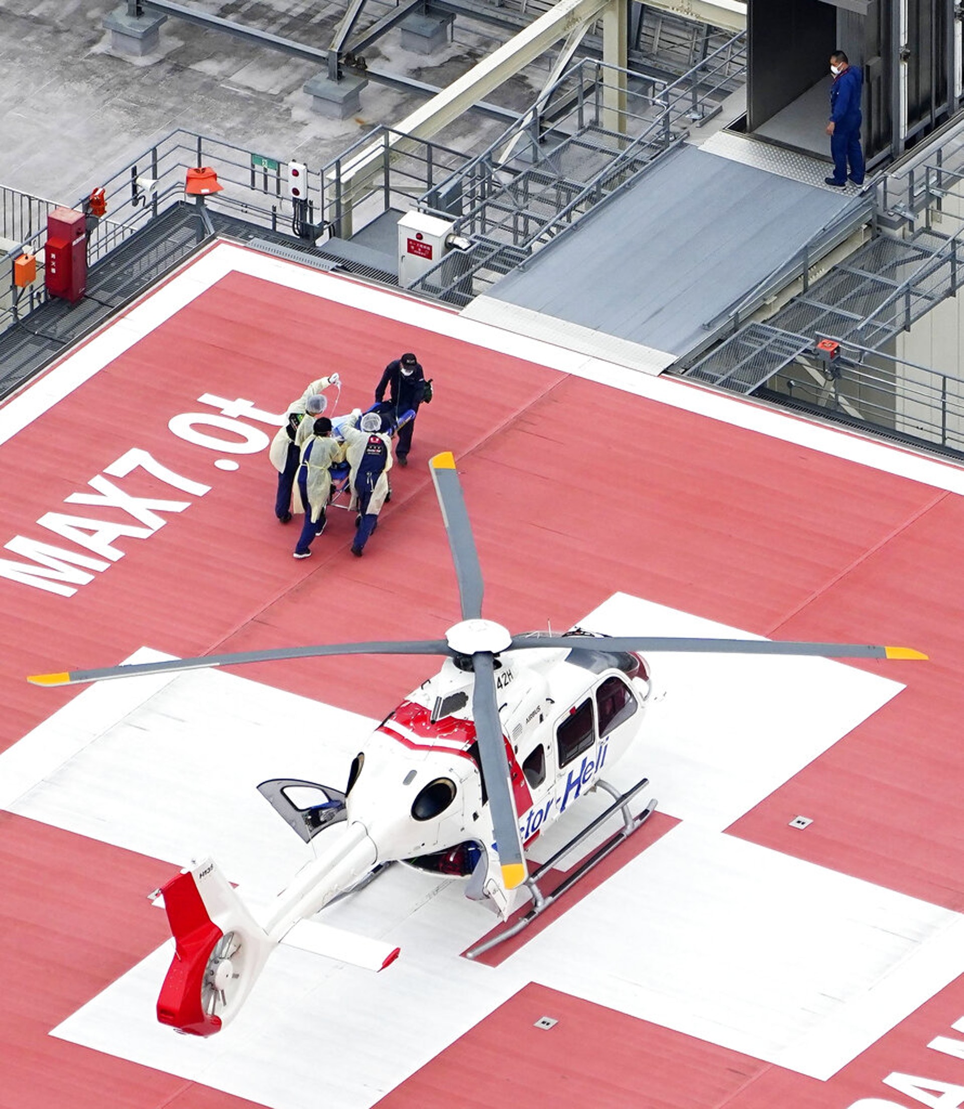 ) S- m% x. ~' s/ f' N4 R5 Z4 A! }安倍晉三遇刺:日本前首相安倍晉三2022年7月8日早上在日本奈良近鐵大和西大寺站外進行競選演講時被人開槍射擊,已被送到附近的一家醫院。圖為相信是安倍的傷者被置於擔架床,準備運上醫療直升機。(AP)os.tvboxnow.com5 w& E7 ]! f0 z% n: Y. j9 o4 {- Q