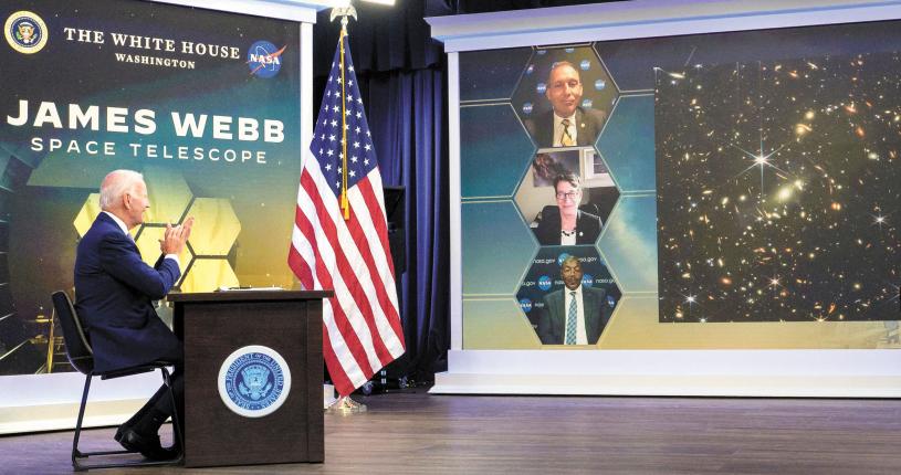 : }! P* w& C6 u% C+ D7 ttvb now,tvbnow,bttvb拜登11日在白宮與NASA署長等人談話,並揭幕韋伯望遠鏡拍攝的「宇宙最深處」觀測照。美聯社