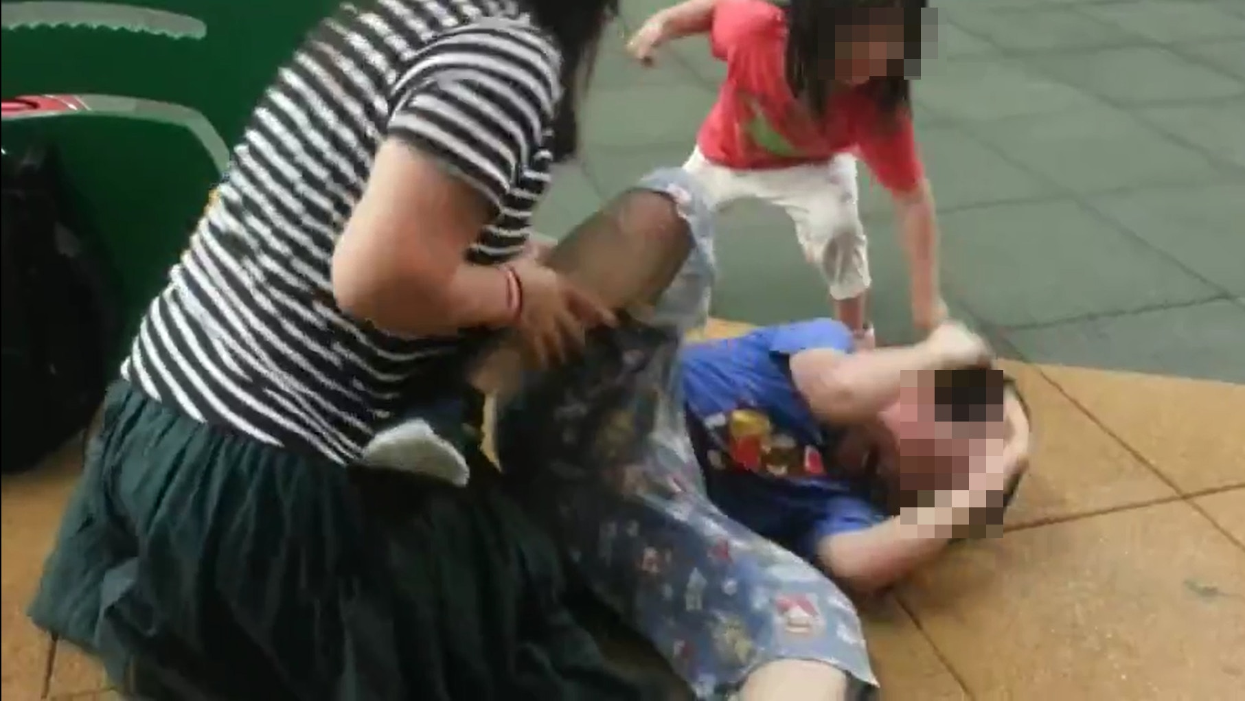 男童被一名女子按地掌摑,一名女童在旁施襲。(網片截圖)tvb now,tvbnow,bttvb$ g4 O- a, X9 H6 _% W4 J+ }- p