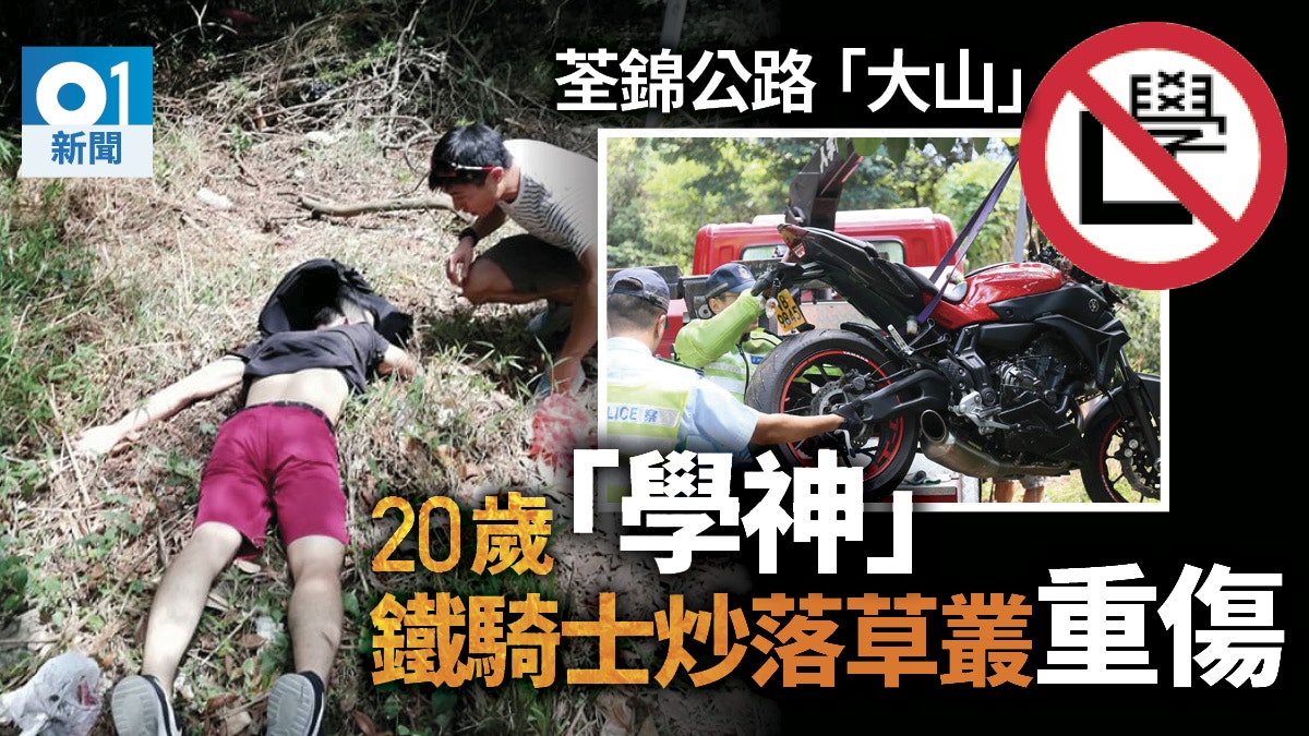 . [' a3 W. w4 U9 k" c l【本報訊】荃錦公路發生嚴重車禍。一名掛「學神牌」的20歲鐵騎士,駕駛一輛大馬力電單車落斜往石崗,途經一個大右彎時失控自炒,連人帶車飛插入草叢墮地,昏迷不醒,由司機途經發現代為報警,傷者經送院搶救後情況危殆,留醫深切治療部接受觀察,警方事後撿走事主的背囊、頭盔以及拖走電單車檢驗,正調查意外成因,列交通意外有人受傷處理。- A9 o7 ?/ M# F& c: l5 n