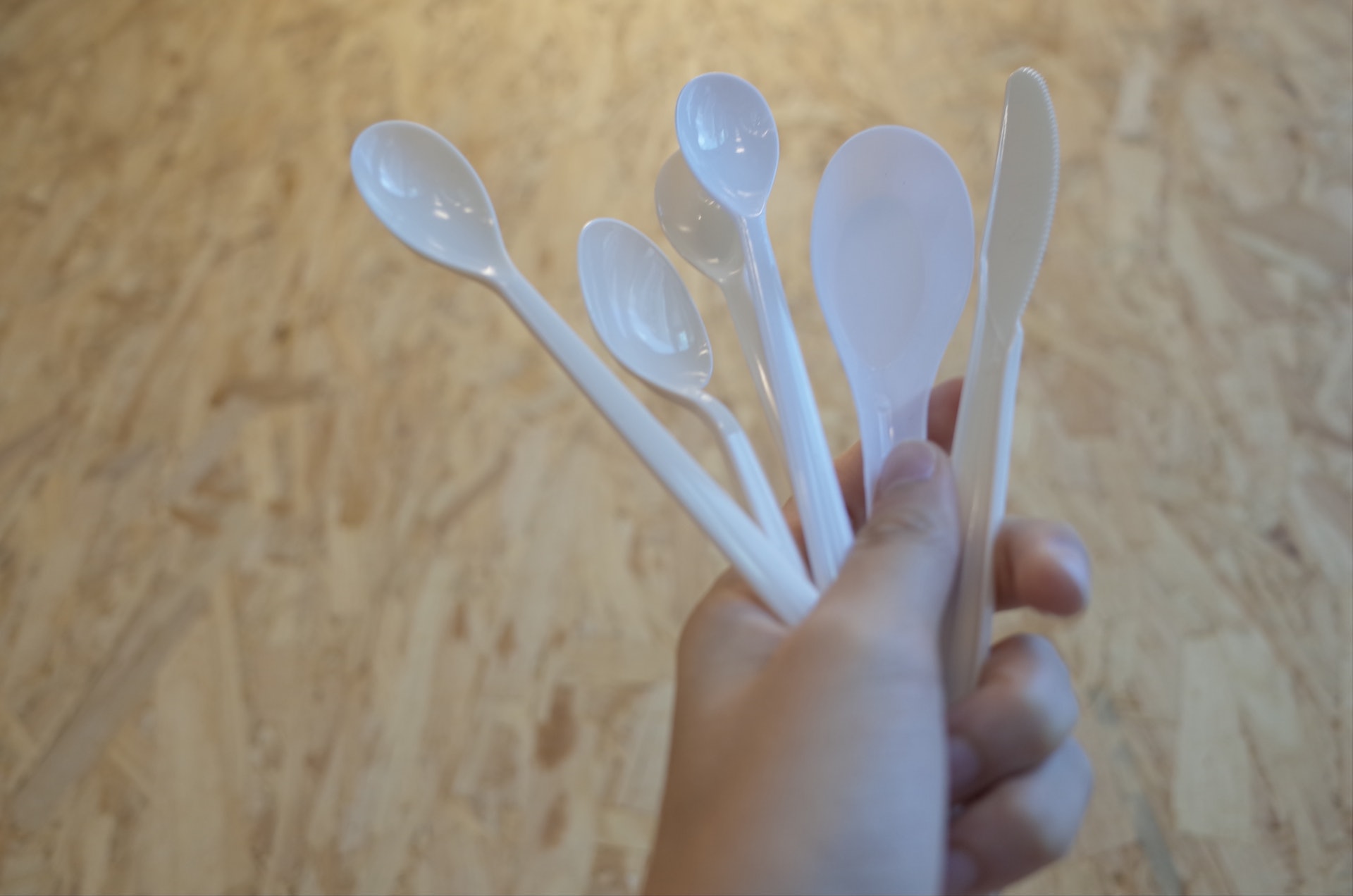 ( x+ A& P, x. L% M; V7 H% `$ A塑膠餐具雖然方便使用,但用完一次後很多時候會被棄置,亦難以降解。(資料圖片/羅俊文攝)
