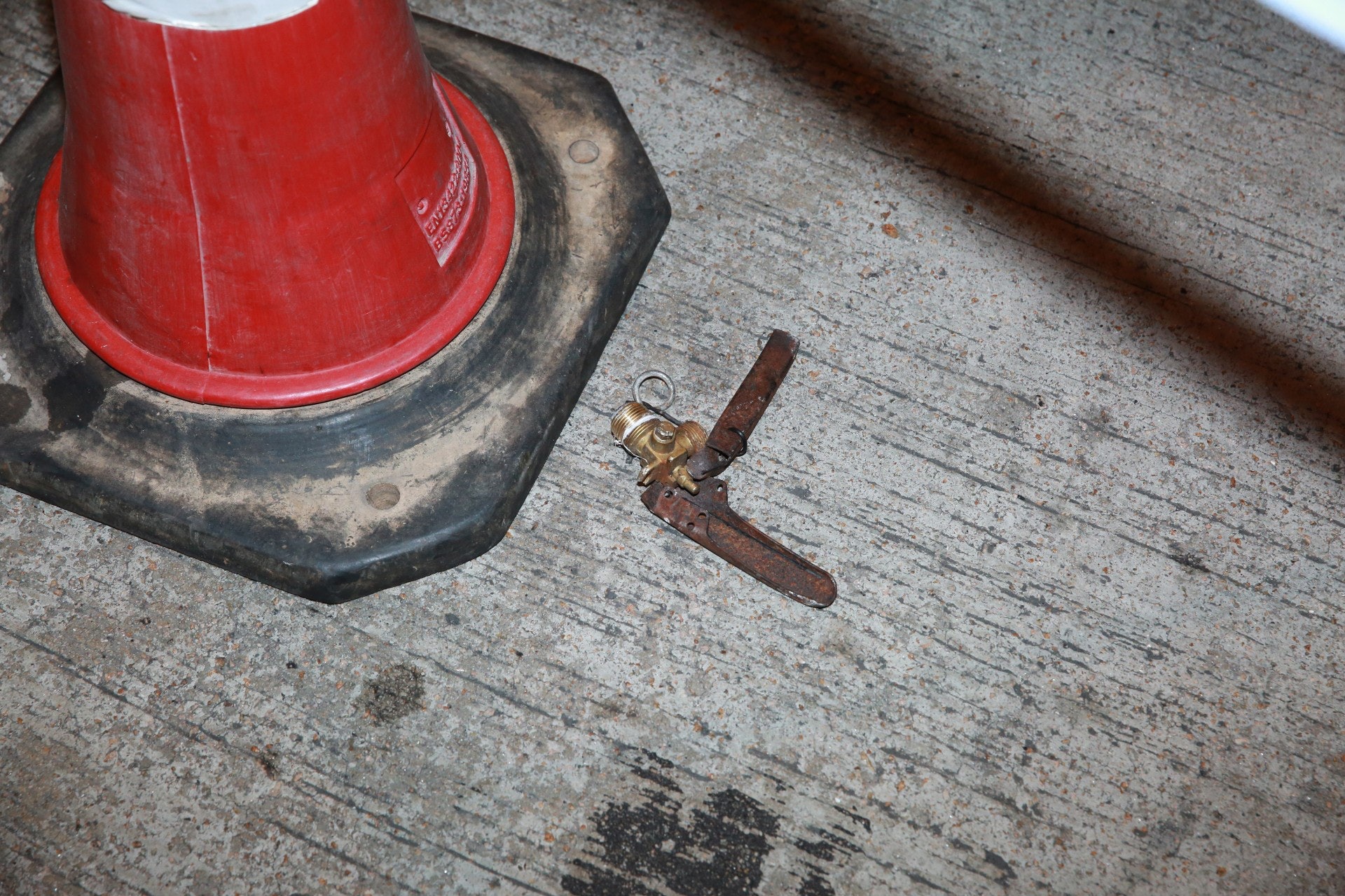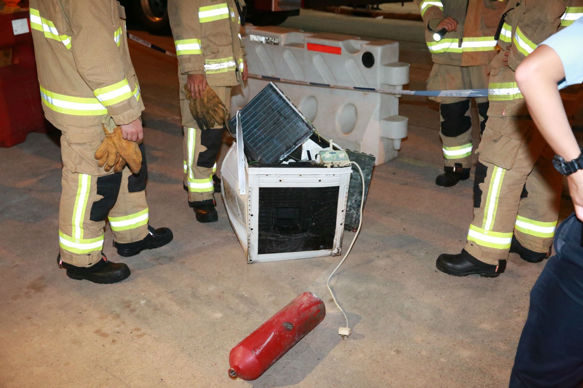 事發於周五(25日)晚10時許,據報一名拾荒者,於深水埗福榮街與欽州街交界路邊,撿獲一支棄置滅火筒,他見狀遂動手將生銹金屬喉咀拆走,藉以變賣圖利。期間,懷疑因氣壓問題,滅火筒突然爆開,喉咀與樽身一分為二,樽身猶如「飛彈」般直射上約50米外、福榮街177-179號一棟唐樓的四樓單位外牆冷氣機。冷氣機當場被撞穿變形扭曲,吊掛在外牆搖搖欲墜。