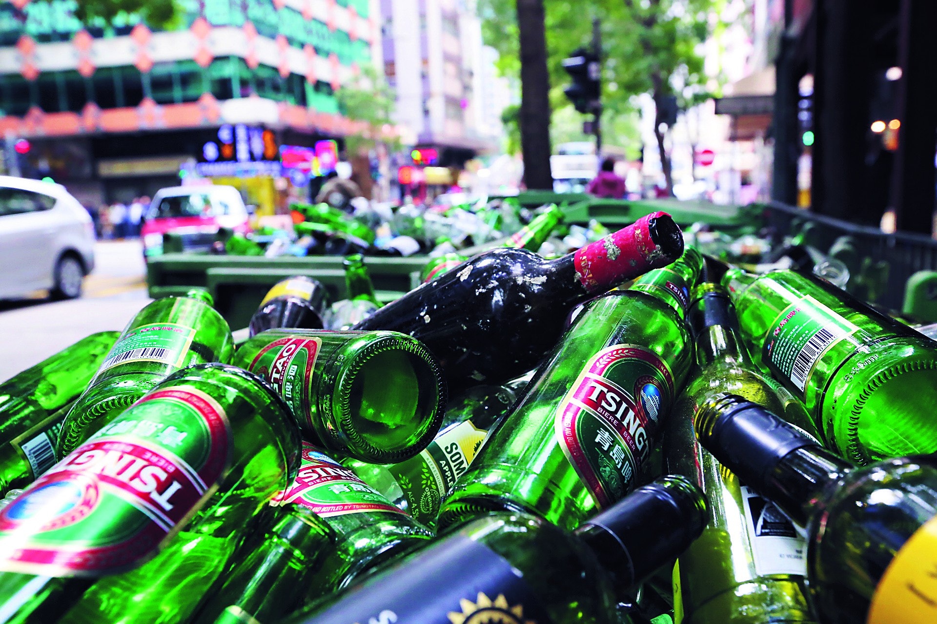 玻璃樽徵費料於2019年年中推行,每公升容器擬收費一元。(資料圖片/高仲明攝)4 z5 S: P% Y' `