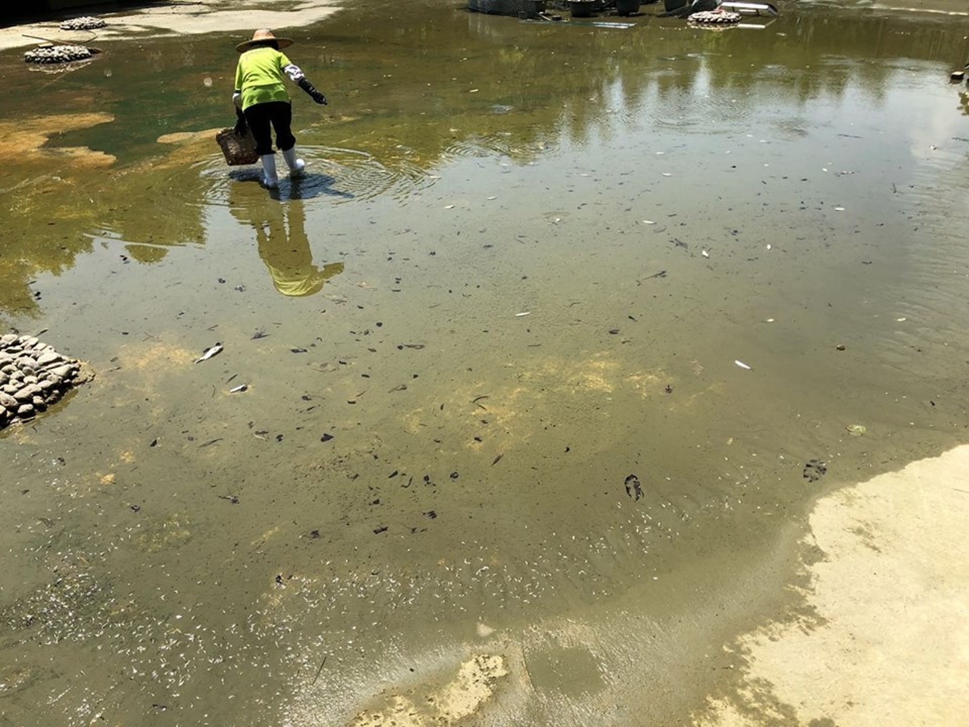 發帖的網民表示,起初部分魚類還在水中掙扎,令水氹出現波紋。(FB群組「Mei Foo美孚」圖片)9 _# j2 e( Y5 L