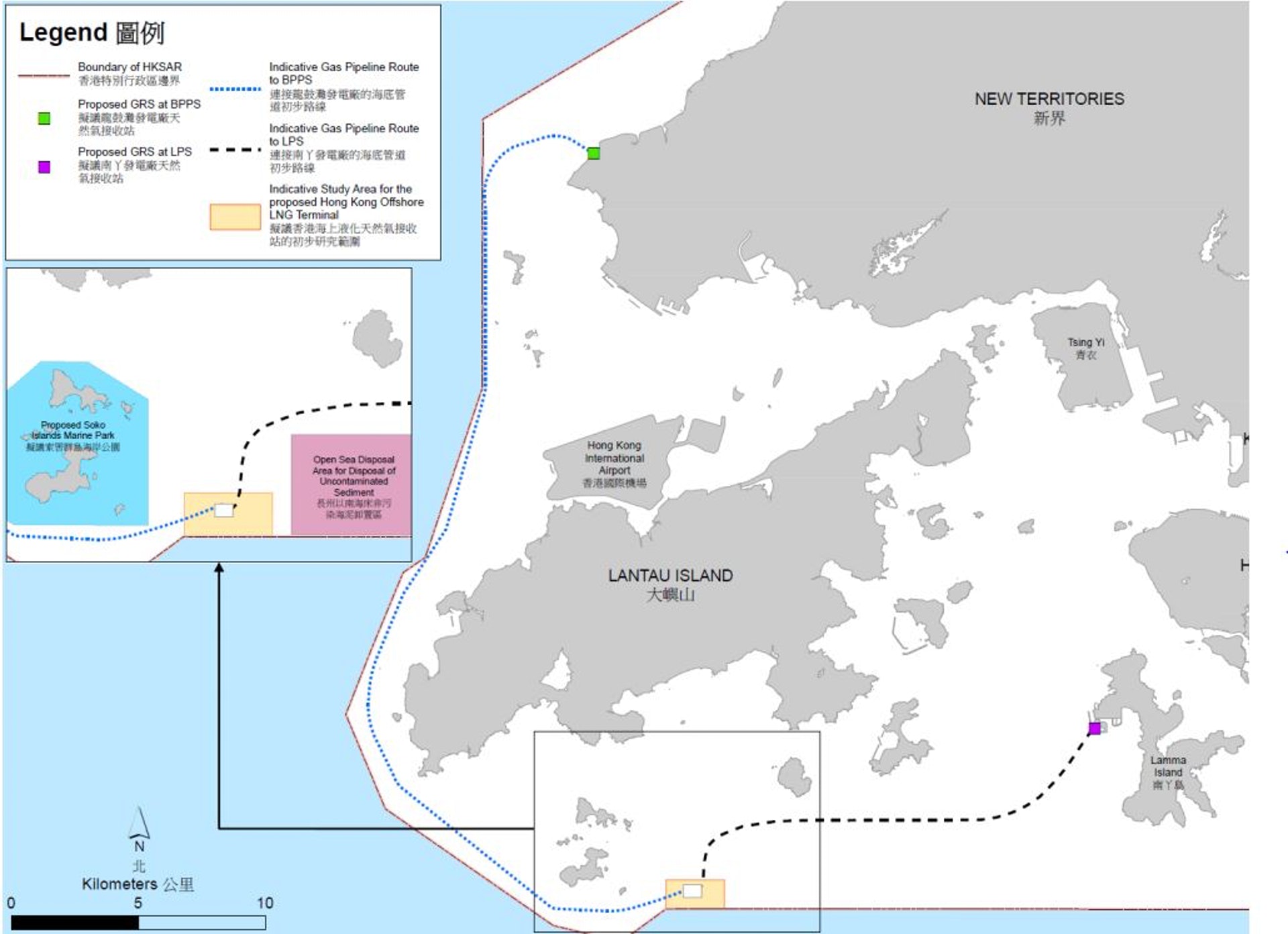 為了增加天然氣發電,中華電力及港燈計劃共同在大嶼山南部索罟群島鄰近水域興建海上液化天然氣接收站,惟工程對附近海豚生境影響成疑。( F/ U+ n6 v8 w