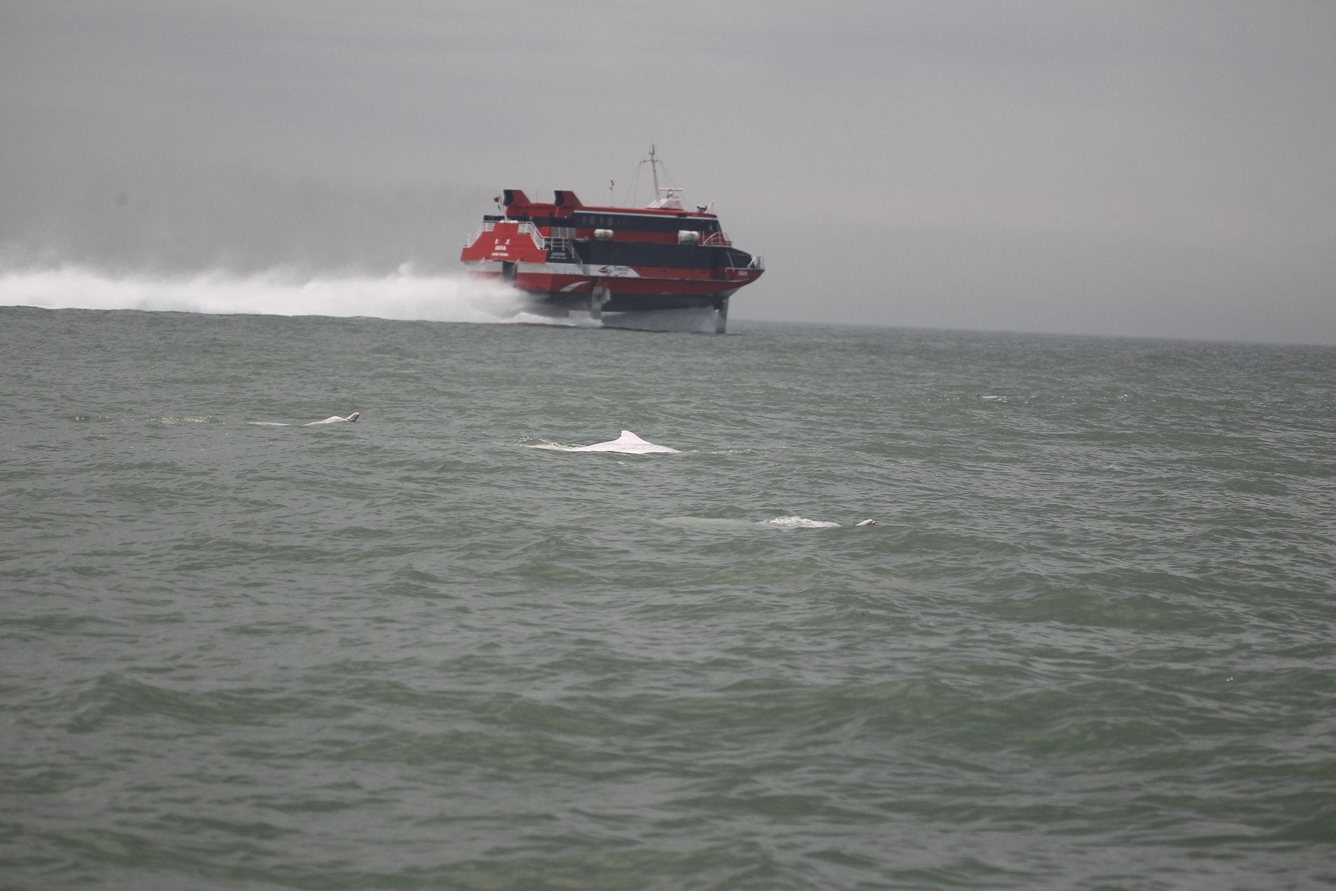 1 w% p; {9 W3 S& j7 x$ @os.tvboxnow.com施工範圍內,仍有不少船隻駛經,為海豚帶來更多噪音,也增加撞船風險。(HKU SWIMS Cetacean Ecology Lab提供)