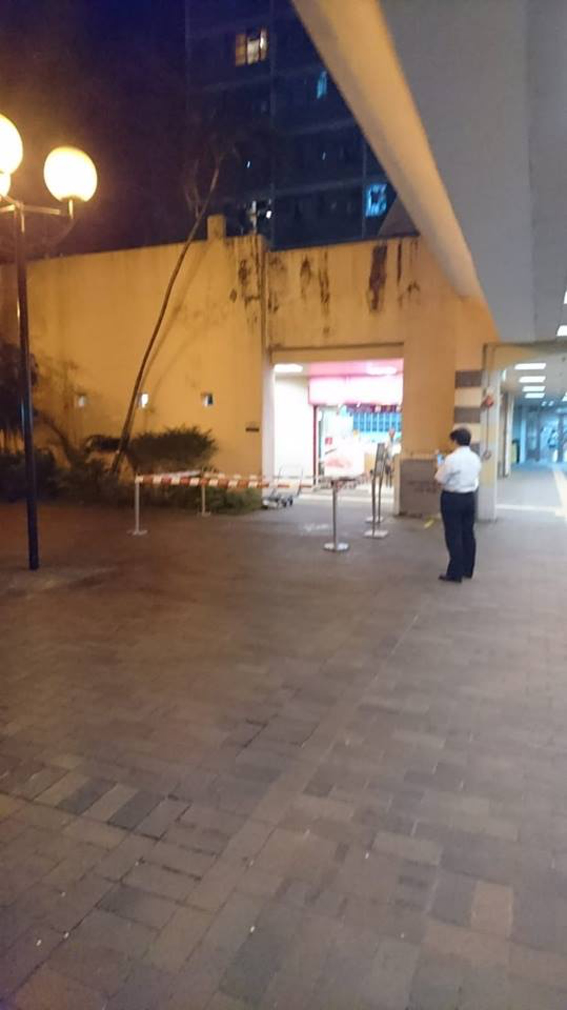 8 z0 {; G8 d- y4 E4 x2 e, U. O公仔箱論壇耀安邨社區主任許立燊本身也該邨居民,他向《香港01》表示,事發今個星期二(9/10)下午3時20分,有狂徒疑於耀安邨耀和樓投擲疑似玻璃器皿,玻璃器皿越過平台直墜商場地舖,幸無人受傷。許從街坊口中驚聞事件,立即告知管理處跟進。惟事隔數小時,同日下午6時40分,再有人疑於同一地點投下玻璃樽,玻璃樽跌至近一間便利店對出之空地,碎片四散一地,有相隔10米的女途人未能逃過一劫,走避不及,被碎片濺傷小腿。