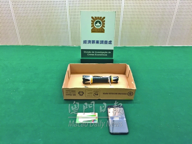 警方在嫌犯的隨身物件內發現一支電槍,相信有人預謀來澳犯罪,將對其控以相當巨額詐騙以及禁用武器罪,稍後送交檢察院處理。 |