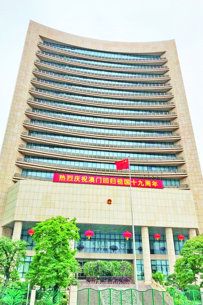 0 E, n) w8 l: E; T% B 特區政府今日上午八時在金蓮花廣場舉行隆重升旗儀式,行政長官及政府主要官員、中央駐澳機構負責人、社會人士出席,澳廣視作全程現場直播。升旗儀式結束後,九時半於旅遊塔會展娛樂中心舉行慶祝特區成立十九周年酒會。