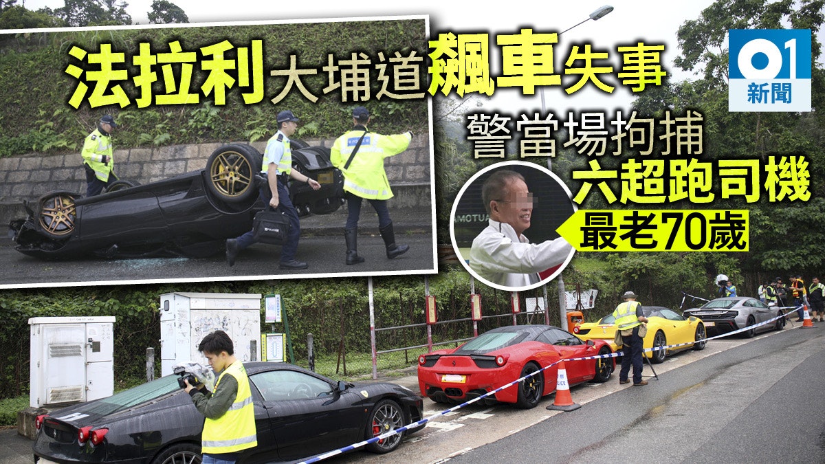 今早(23日)7時25分,一輛黑色法拉利沿大埔公路近赤泥坪行駛時,疑撞向山邊石壆,四輪朝天翻側,車身冒出白煙,車頭玻璃碎裂,現場一度傳出有人被困,車內男司機及女乘客及後自行爬出,兩人受輕傷,警方接報後到場調查事件,事後當場以涉嫌危險駕駛拘捕六名男司機,年齡介乎36至70歲,六人報稱任職商人,涉事跑車包括法拉利、林寶堅尼及麥拿倫。被捕司機現已保釋候查。tvb now,tvbnow,bttvb3 B) g) k% ~4 ]+ V