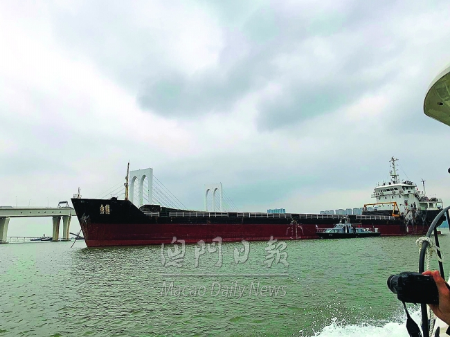 本月十四日清晨約五時二十分,散貨船“金能XX”沿往內港航道向東行駛,駛至機場跑道東北對開海面期間懷疑偏離航道,擦碰到M4號浮標並把浮標拖行了約半海里後不顧而去。海事局船舶交通管理中心於昨日上午十一時許,透過雷達監察系統發現肇事船於往內港航道往西航行,隨即通報海關協助攔截。海關截停肇事船隻後通知海事局跟進,期間船隻一度試圖駛離,被海關船隻再次截停。
