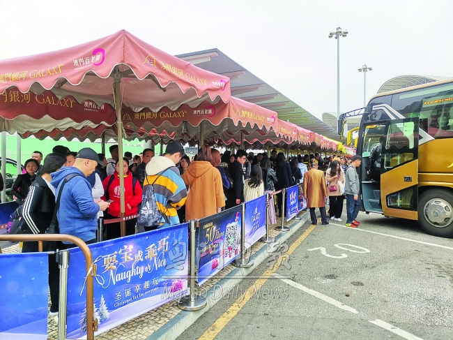 昨日中午,關閘出入境口岸秩序暢順,出境居民與前兩日相若,入境旅客則較前日微增。關閘地下巴士總站、各個巴士站點及的士站候車暢順,未見人龍。往來各賭場的發財巴下午二時起逐漸出現人龍等車。旅客指平均三至五分鐘可上到車,情況良好。有內地旅客表示,內地沒有聖誕假,亦較少聖誕佈置,故一家大小特意來澳過節,感受聖誕氣氛。公仔箱論壇. e3 x# ~, L* t: C# i# X, v' G