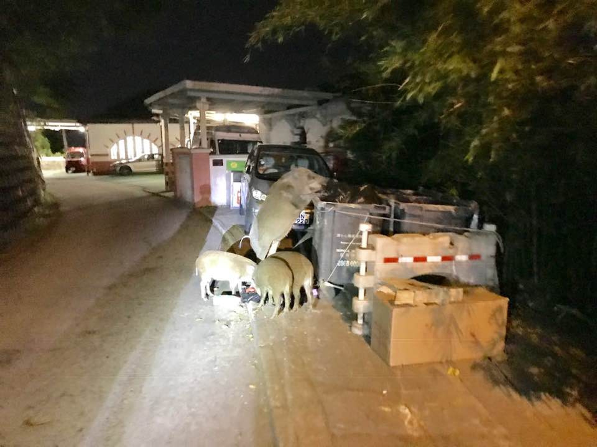) J l. z$ }" x' A2 l) X2 I1 Q% `9 x公仔箱論壇上傳一張不知道是否由他拍攝,野豬在垃圾桶尋食的照片。(梁振英fb)