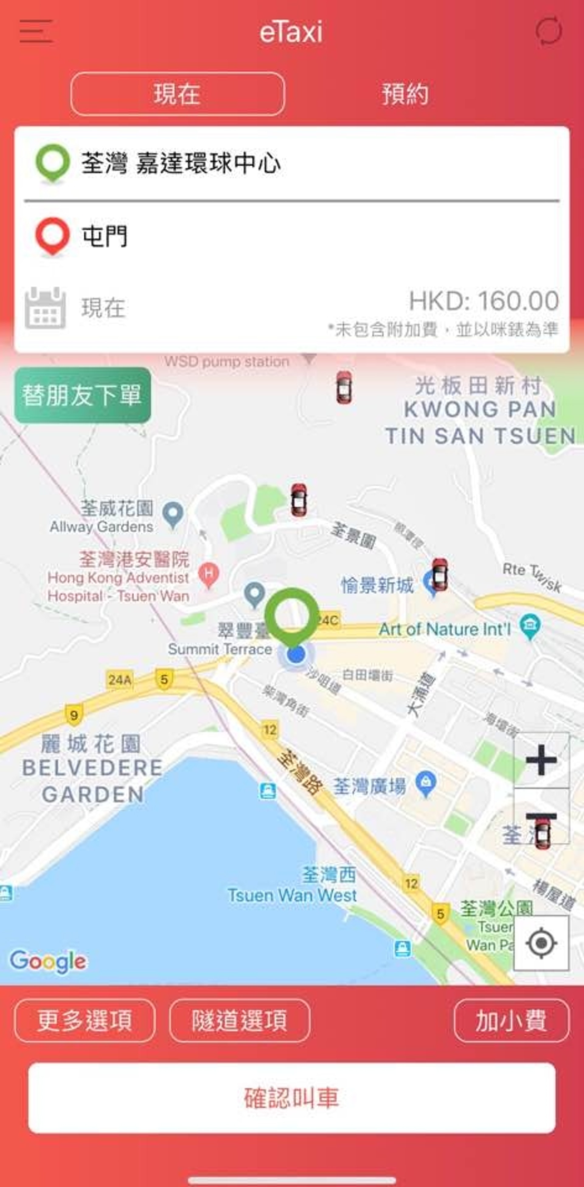 / I6 a7 d+ J( K6 ^, o記者嘗試使用「E-的士」乘客版,只須輸入出發點及目的地,便能成功召喚的士。(eTaxi App)tvb now,tvbnow,bttvb% z; w! i/ C: p8 K+ p+ n
