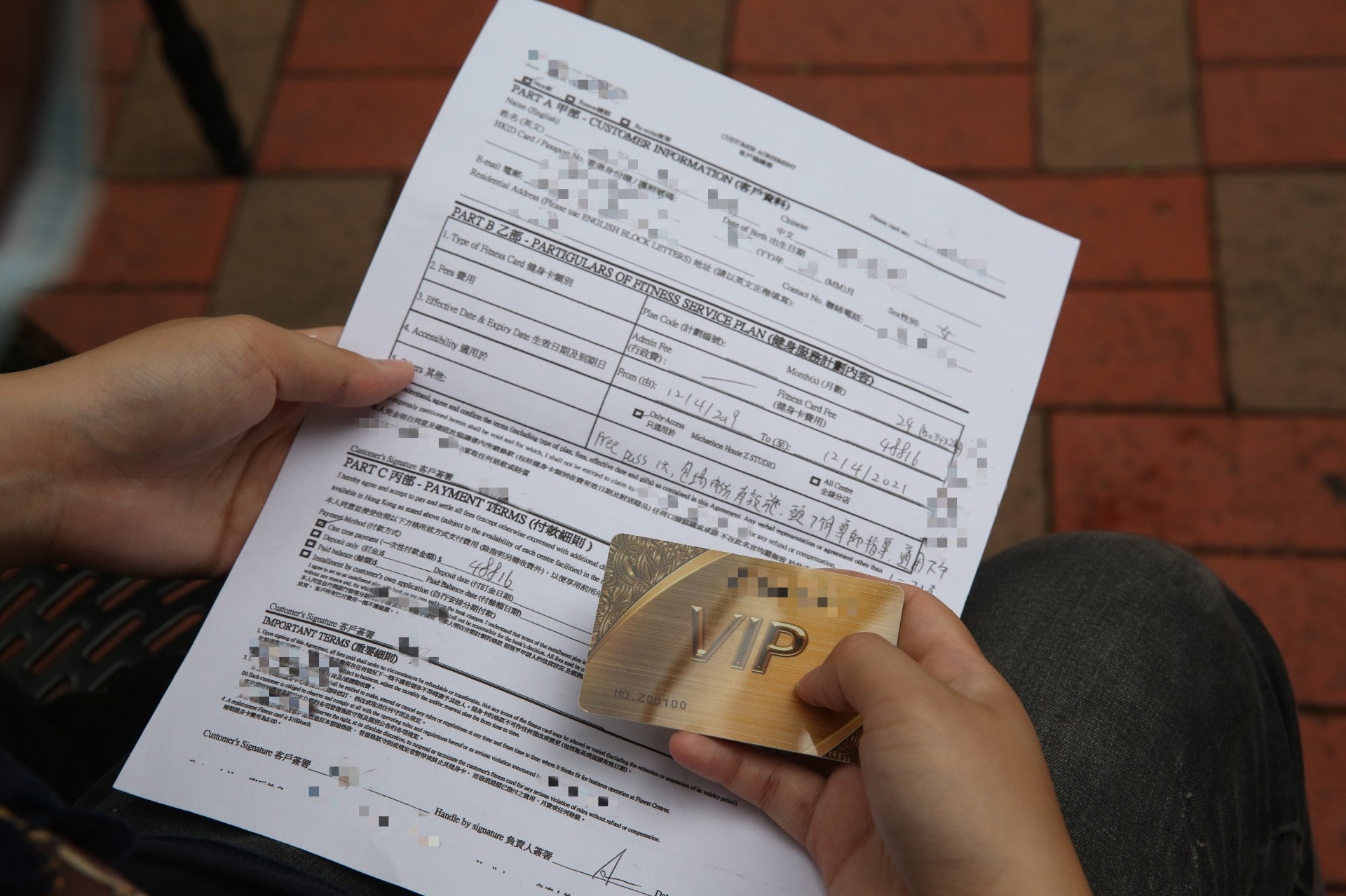 1 F8 @* r4 }5 x3 S, v- b1 mos.tvboxnow.com一名女事主被職員以「派卡片」為由,帶上公司簽署健身會籍合約,其間對方用手遮擋銀碼,得手後再要求她拍片證明自願,5萬元款項追討無門。(魯嘉裕攝)公仔箱論壇" i* H$ z5 H* z+ C0 v9 D# T