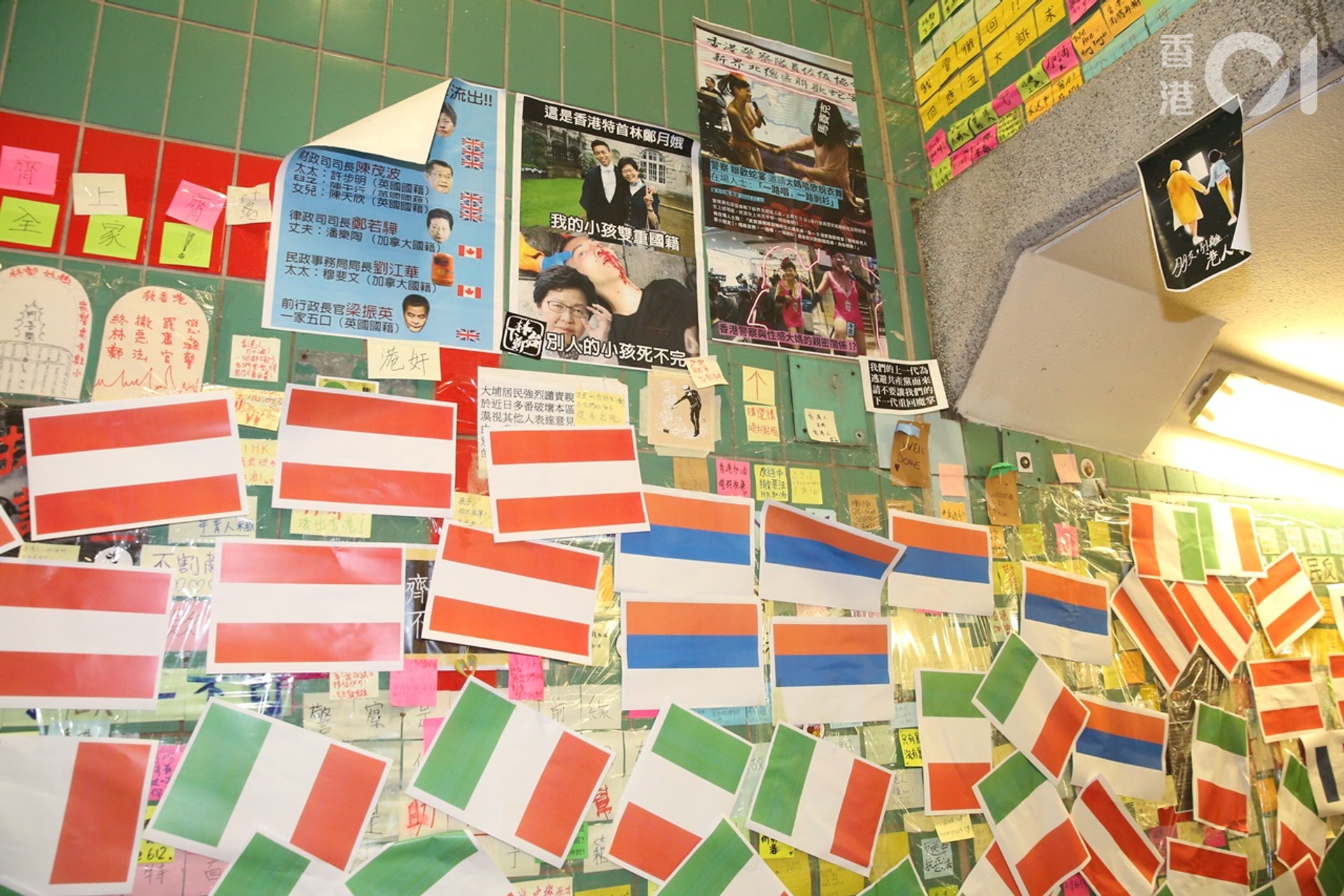 1 R7 V8 h! l8 u# d% j7 Etvb now,tvbnow,bttvb大埔連儂隧道被貼上多國國旗。(Tai Po 大埔 fb) |