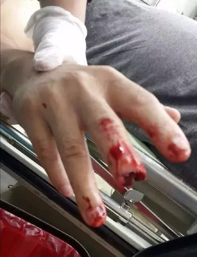 然後抓住被打在地上兇殘毆打的警察的手指,生生的將警察手指鉗斷。- Z+ |& L" Y* b- H9 `) s& G