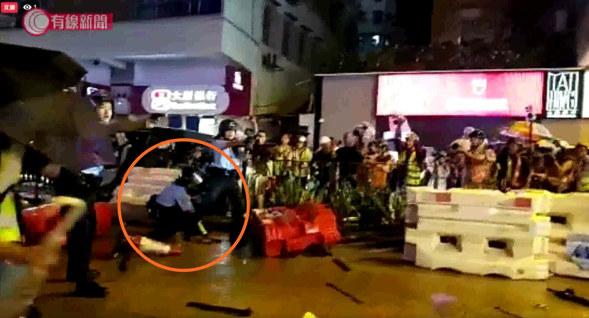 1 V" K- Z9 A! Z O' p; |9 z根據多間傳媒包括有線新聞的直播片段可見,三名警員擎槍前,有警員曾絆倒跌低。而根據網媒「SocREC 社會記錄頻道」拍到的片段,可見三名警員擎槍後,地面有一支懷疑手槍物體,其中一名警員擎槍指向人群,並走向及站在懷疑手槍物體掩護;另一名警員則上前俯身檢回懷疑手槍,再指向人群。而有線新聞片段亦見到,該名警員俯身檢起物件的動作。