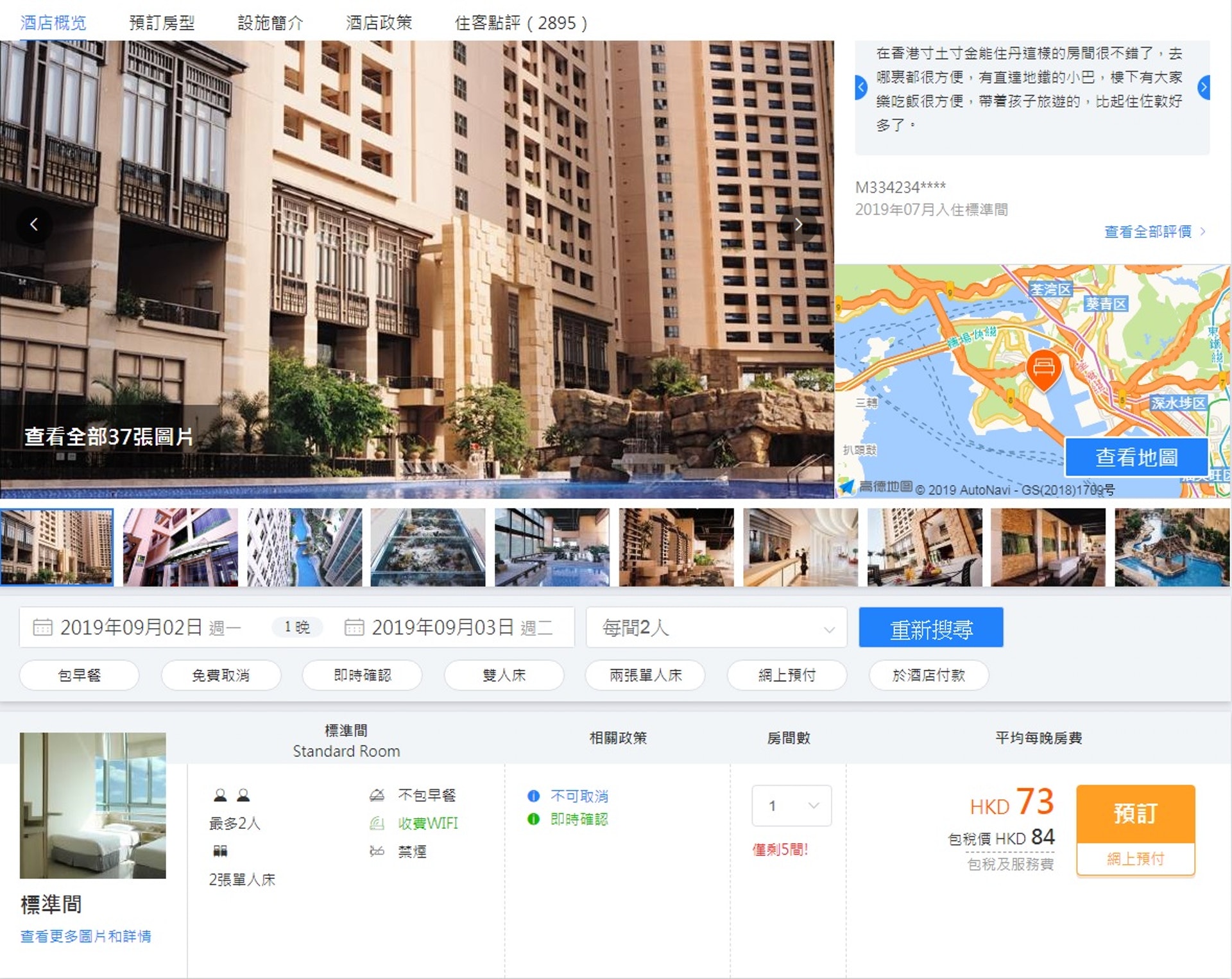 9 P8 o/ l- `2 x0 d3 B+ G位於青衣的香港永倫800酒店,一晚房價(不連稅)只需73元。(永安旅遊截圖)