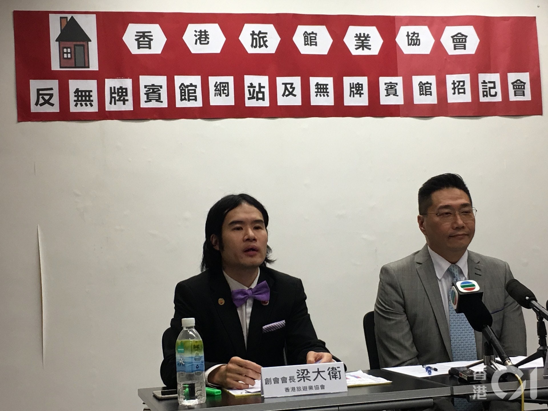; D# h8 u# n) O- a! o香港旅館業協會創會會長梁大衛(左)表示,不少賓館本月「零」入住率。(資料圖片)! N: |8 B/ o& E* a4 V& x