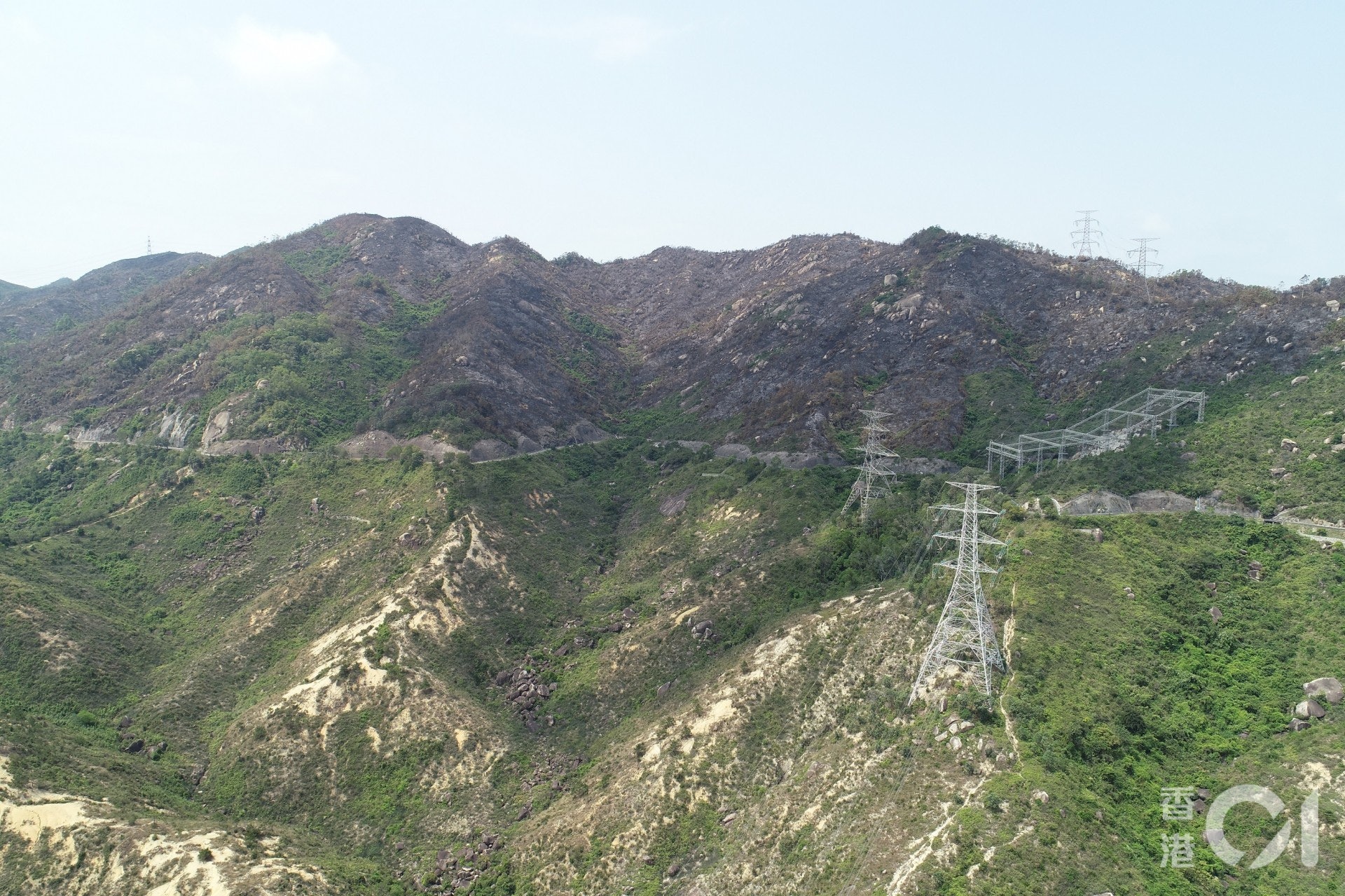 山頂部份叢林已焚毀,變成焦黑一片。(蔡正邦攝)