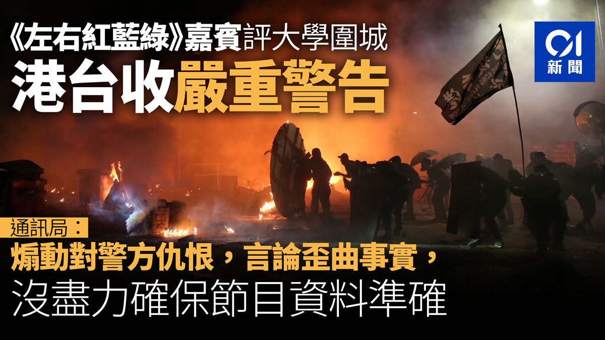 $ d. H+ \4 \5 ?- }1 ^! |7 a通訊事務管理局表示,港台節目《左右紅藍綠》去年11月20日播出的一集,嘉賓主持評論中大及理大衝突事件時,涉及偏頗、煽動對政府、警方的仇恨。通訊局認為,港台沒有盡一切合理努力確保節目中的真實資料準確無誤,以及在節目播出前從各方蒐集資料,查證主持所作出的嚴重指控是否屬實;但局方認為無足夠證據證明主持的言論鼓吹或認同違法行為。