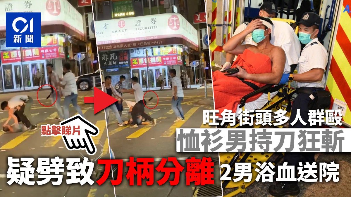 4 u. t# ?! a4 {4 r6 E* E* {4 T今(2日)晚10時許,旺角亞皆老街及砵蘭街交界近朗豪坊對開,警方接報指有5至6名男子打架,有人手持利刀及玻璃樽等武器,一輪混戰後四散逃去。警方趕抵發現姓林(33歲)男子,其頭部被斬傷,清醒被送往廣華醫院治理。現場遺有1把7吋長菜刀,警員用垃圾桶將它遮掩。