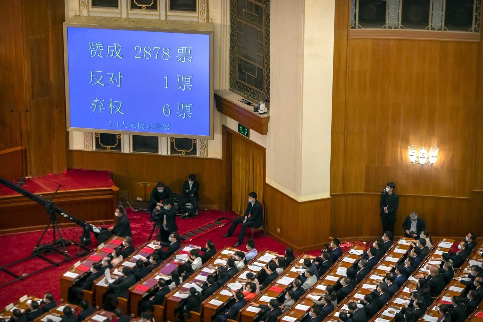 2 r6 {: C0 i% X q+ n全國人大以以2878票贊成、1票反對、6票棄權,表決通過「港版國安法」。(美聯社)公仔箱論壇4 N/ E- u$ F$ T3 R