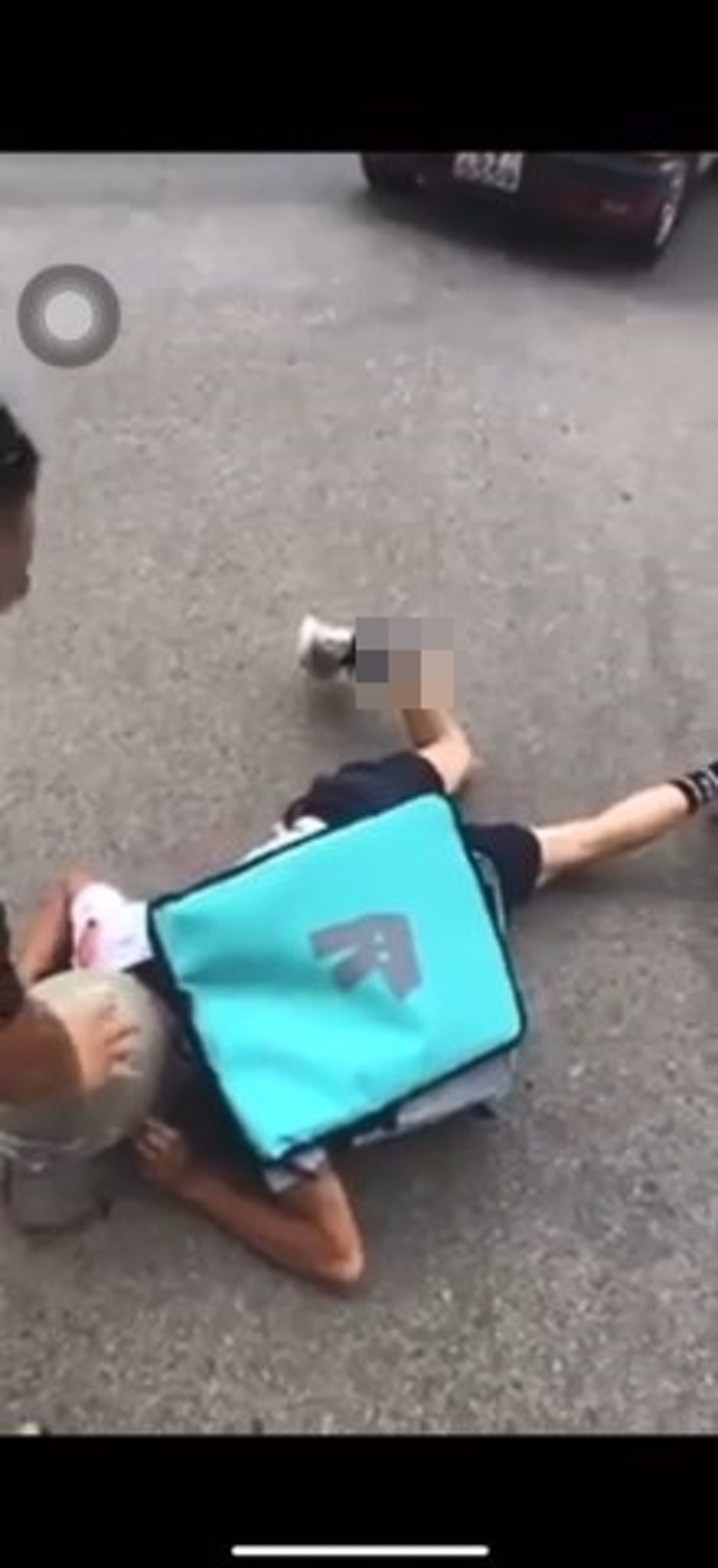 大角咀連翔道與海暉道迴旋處有Deliveroo外賣電單車與的士相撞,外送速遞員倒地受傷。(facebook群組「(香港)送餐/送貨員意見交流區」圖片)os.tvboxnow.com) [8 |, s j( ~( o6 s5 [