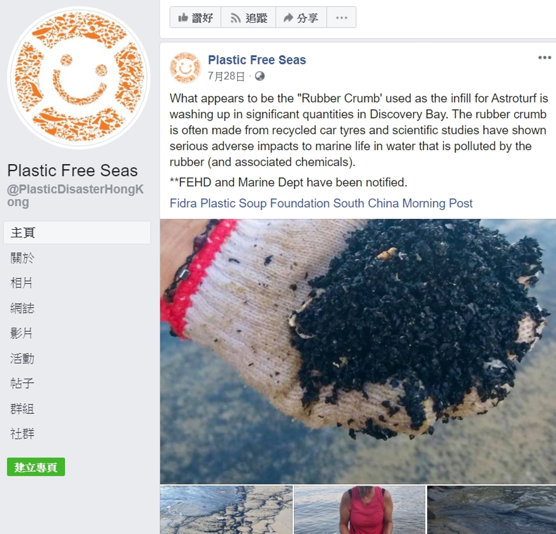 . F: G3 \* v1 y+ ?/ v8 x {+ }' ~, y' D$ b環團上月尾愉景灣二白灣,於海面、海床發現大量黑色塑膠粒。(無塑海洋Facebook專頁截圖)公仔箱論壇! d) d0 N# z# ?0 Q