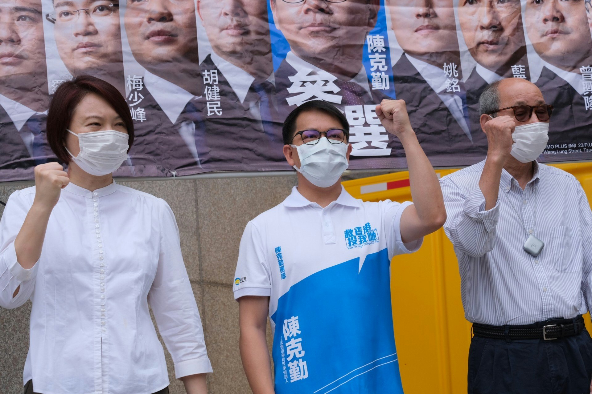 陳克勤指,希望9月後繼續與李慧琼走進議會。(盧翊銘攝)