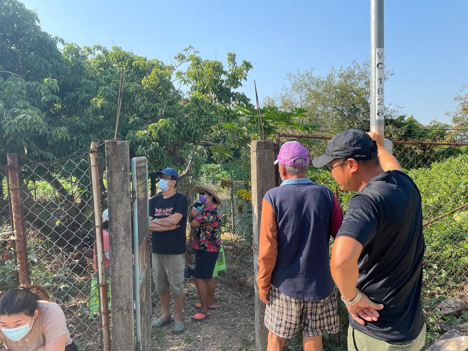 多名村民在閘前攔路,要求行山人士離開,有人更指要報警處理。(讀者提供)tvb now,tvbnow,bttvb( U' P" c+ W1 n! E" B; d