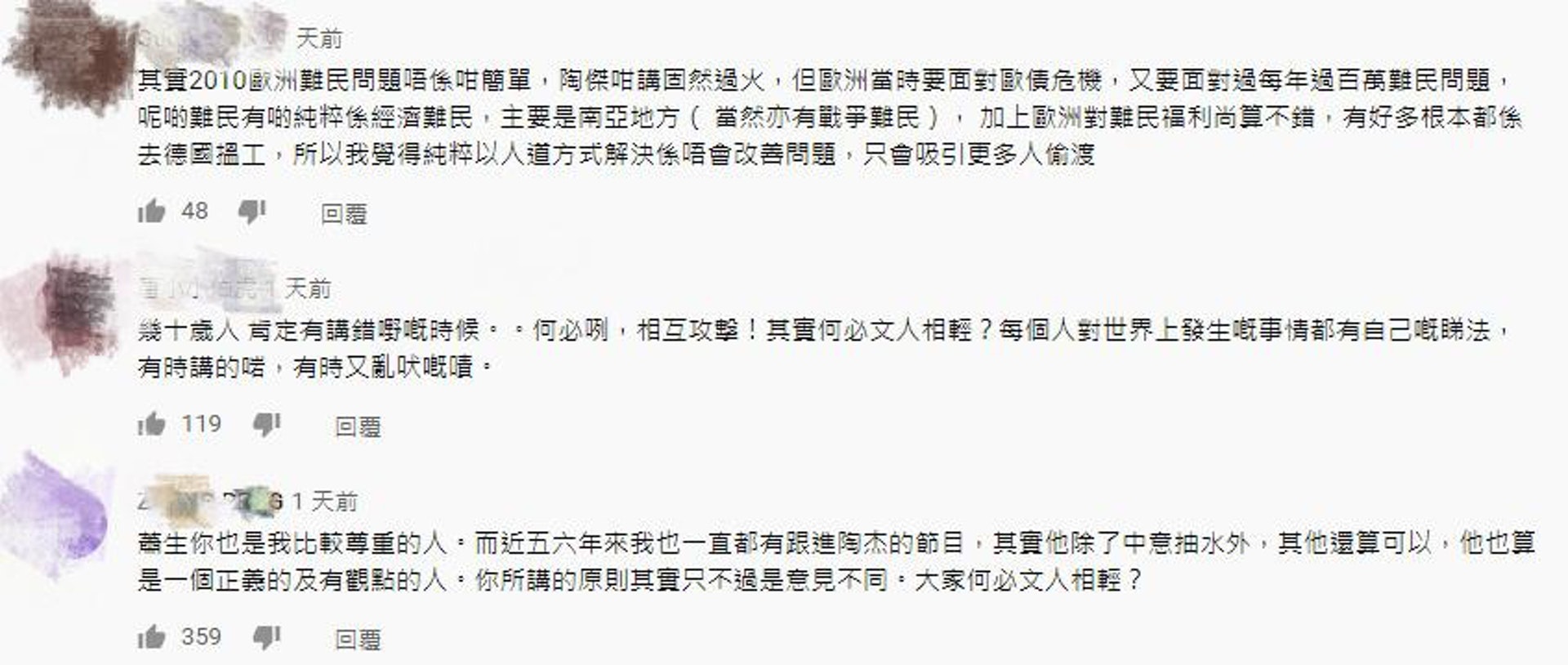 對於蕭生突然大鬧陶傑,網民反應似乎不太支持蕭生,不少網民認為不應「文人相輕」,指陶傑雖然偶有較刻薄言論,但沒必要人身攻擊,又認為陶傑對難民的言論並非全錯。對於蕭生指控,陶傑今次暫未見回應,但他在2015年就曾通過傳媒反擊,指大家層次唔同,「上網只係會睇啲一流人物嘅嘢」,直言未看過對方節目,火藥味十足。